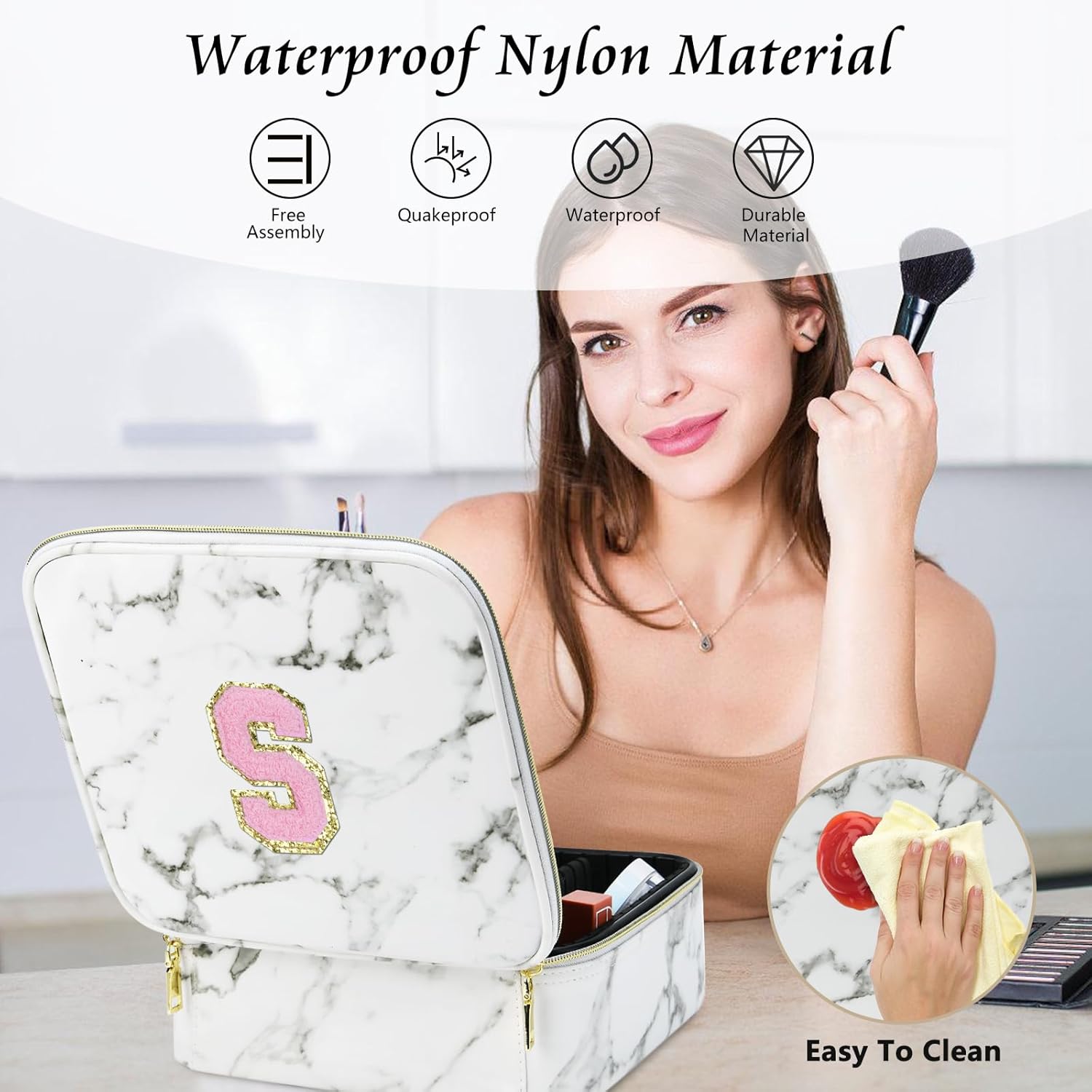 👍 PREMIUM PERSONALIZED GIFT: No cheap mesh materials, entirely crafted from waterproof PU leather. Choose an exclusive initial makeup organizer for her name from A to Z, as a gift for your mom, daughter, wife or someone special in your life to highlight your gift quality and exclusive love.