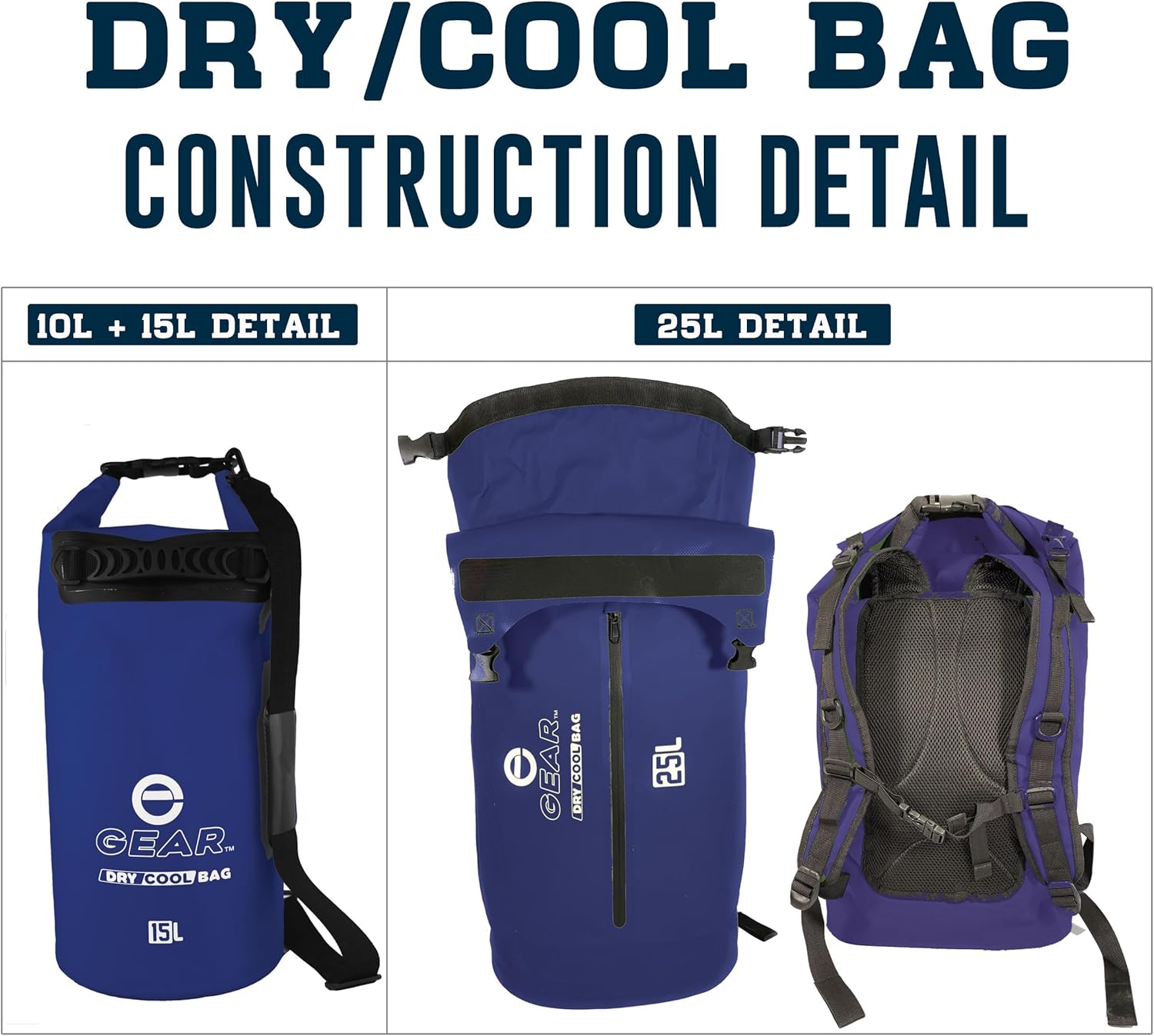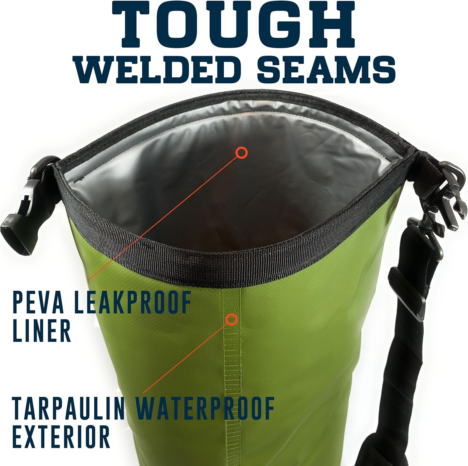 Durable, Waterproof and Insulated – Our roll top insulated cooler bag is made of waterproof welded tarpaulin exterior, a layer of closed cell insulation, and a welded PEVA liner to protect from leakage. Our closure is designed without zippers – just roll the top down a few times and then lock the clasps for a water-tight seal. It even floats! * Note: You can expect light condensation on the outside of the bag when used as a cooler.