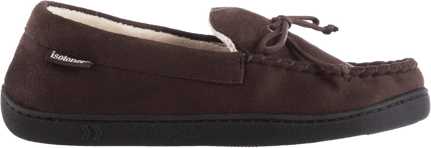 Isotoner Men’s Microsuede Moccasin Slippers – Men’s Indoor and Outdoor Sole Slippers, Features Memory Foam for a Customer Fit and Arch Support for All-Day Comfort, Machine Washable