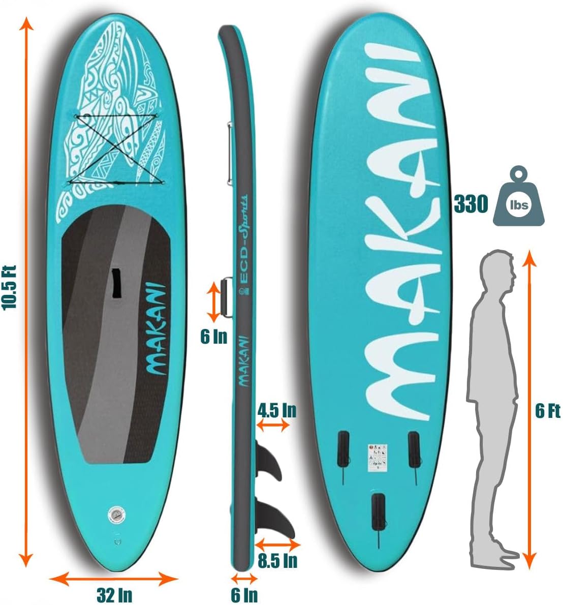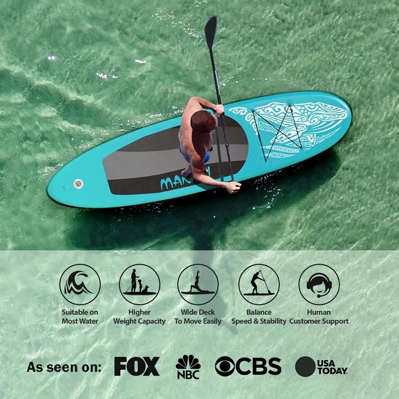 Versatile All-Around Use: Designed for beginners to advanced paddlers, this inflatable stand up paddle board (SUP) offers unparalleled stability and balance on calm and flat water. Ideal for yoga, surfing, paddling, and exploring, it accommodates all skill levels, including men, women, youth, and even pets.
