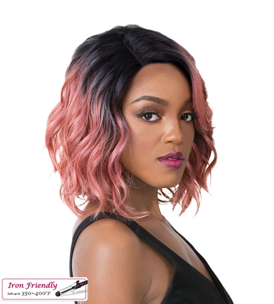 It’s A Wig Iron Friendly Synthetic Colorful Gorgeous Wig Medium Length Wavy Bob Style Side Part Soft & Silky Swiss Lace Front – SWISS LACE GLANAGE*Please read the product features for more information