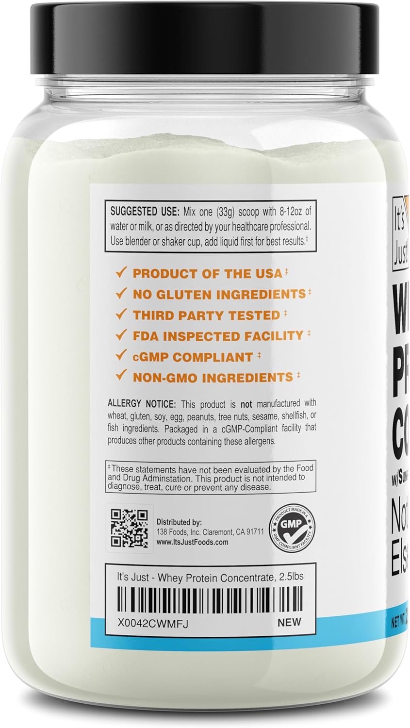 It’s Just! – 100% Whey Protein Concentrate, Made in USA, Premium WPC-80, No Added Flavors or Artificial Sweeteners (2.5 Pound (Pack of 1), Original/Unflavored)