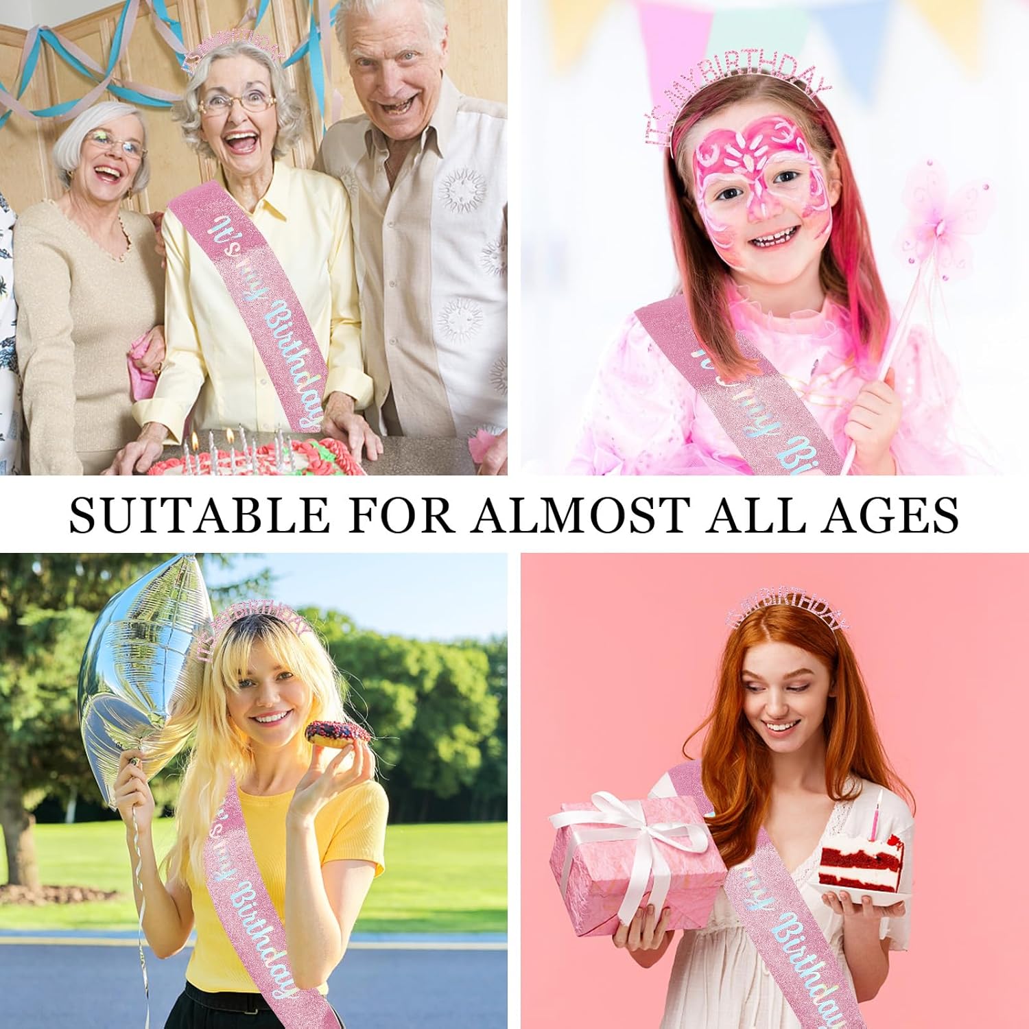 It’s My Birthday Sash & Birthday Headband Set Princess Birthday Sash and Tiara Sweet Happy Birthday Accessories for Party- Pink