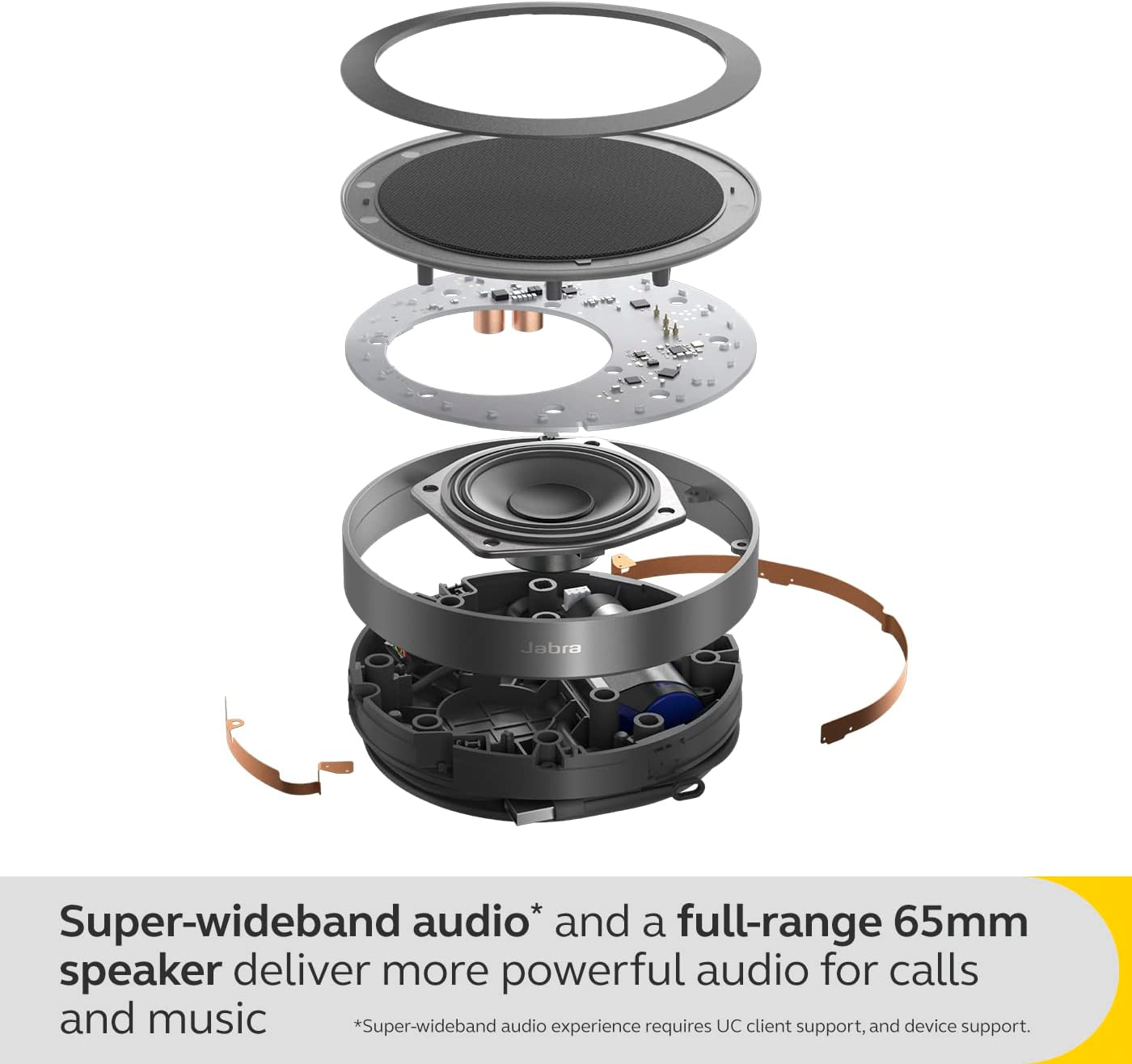 MAXIMUM PERFORMANCE – 65mm full-range speakers and super-wideband audio create incredible voice and sound quality, while the full-duplex audio on this Jabra speakerphone ensures conversations flow naturally.