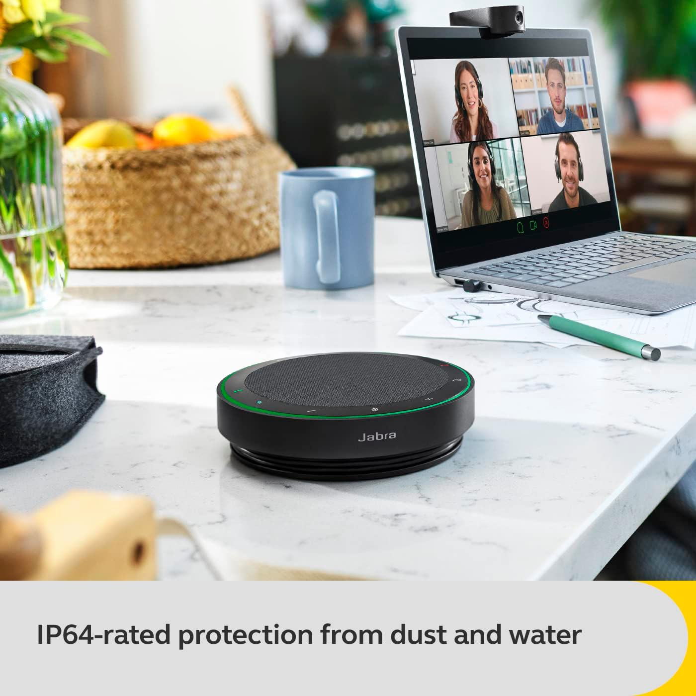 EQUALIZES VOICES – Four beamforming microphones in this Jabra speaker reduce background noise, while the microphone quality indicator shows how well your voice is captured. Voice Level Normalization technology equalizes all voices to the same level.