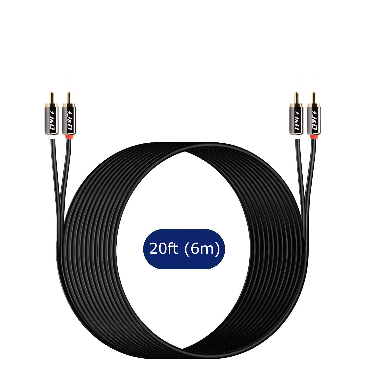 J&D 2 RCA M/M Stereo Audio Cable, Gold-Plated 2RCA Male to 2RCA Male Copper Shell Auxiliary Audio Cord for Home Theater HDTV Amplifiers Hi-Fi Systems Speakers, RCA Audio Cables, 20 Feet