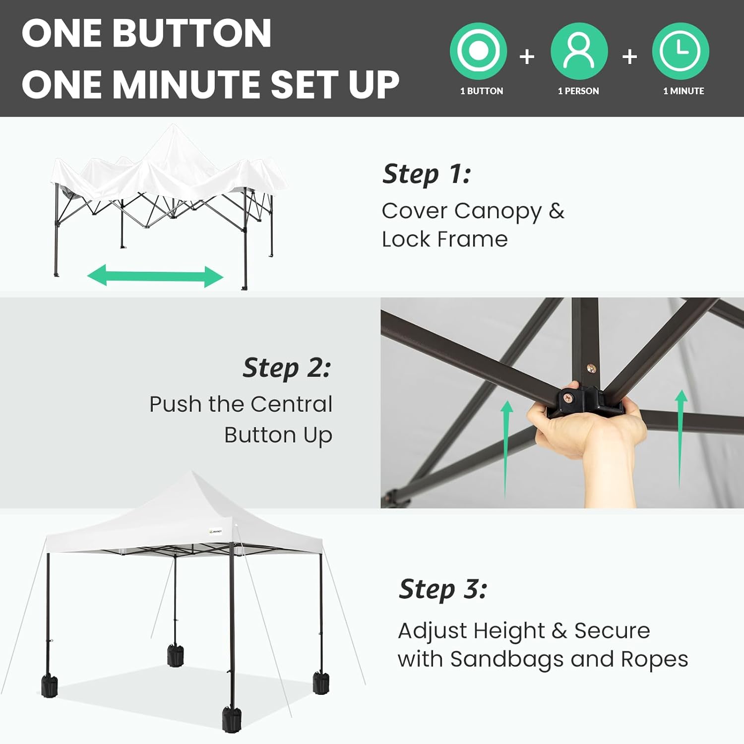 Easier Set-up and 3-levels Adjustable Design: One person can complete the installation in a few minutes without any tools: 1.Remove the assembled frame from the bag, pull open. 2.Place the fabrics top over the frame. 3.Extend the legs, Support tube design is more user-friendly, can be adjusted in three levels, suitable for different occasions.