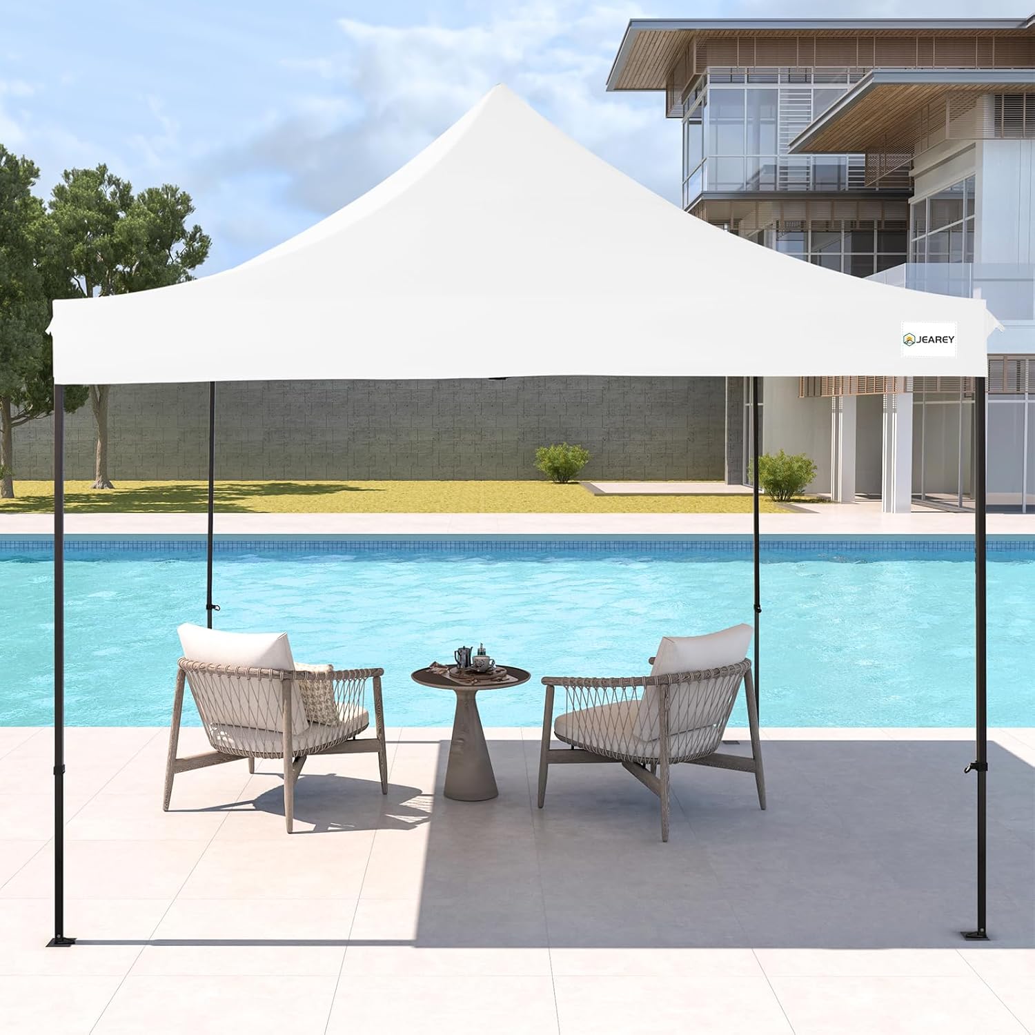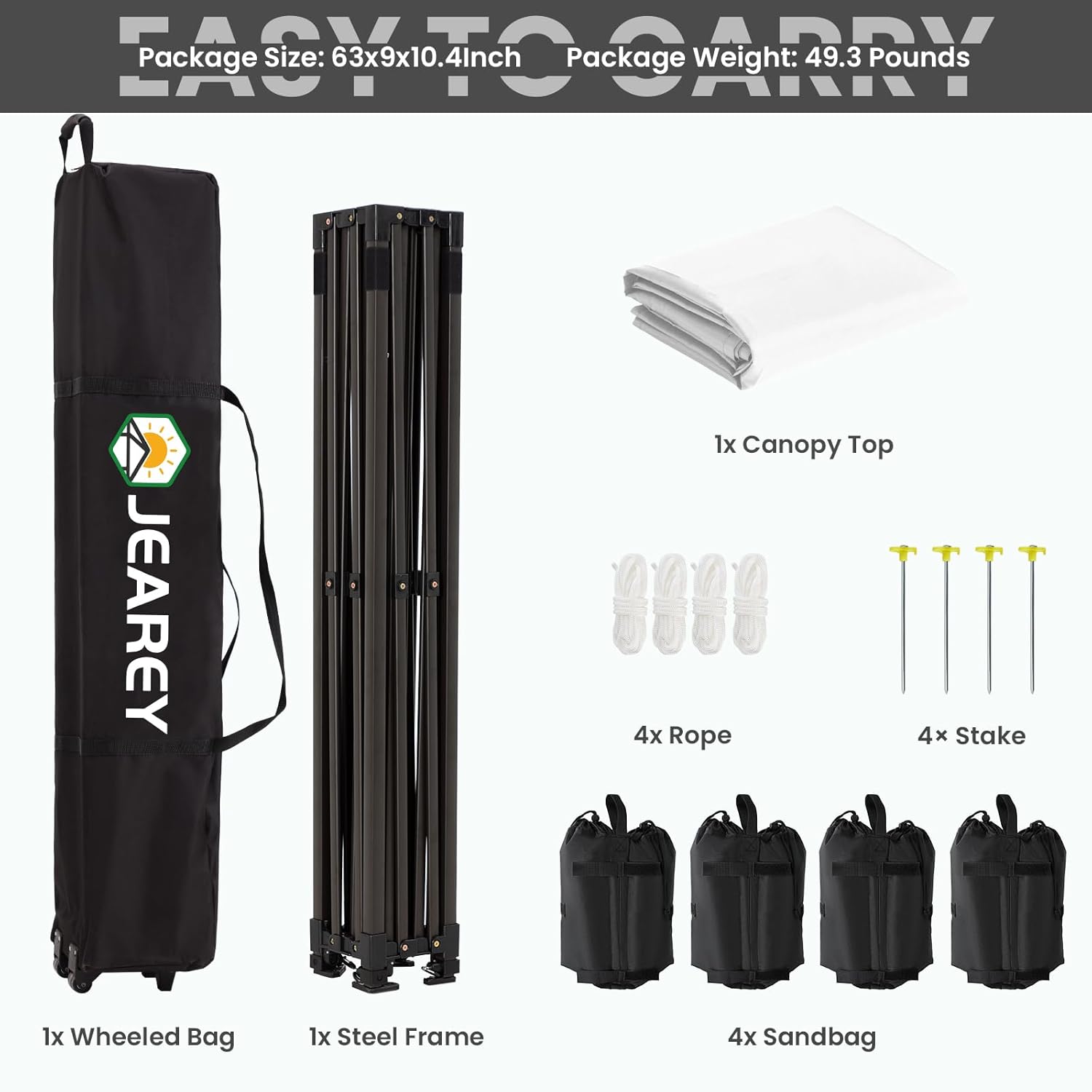 JEAREY Upgraded 10×10 Pop Up Canopy Tent, Heavy Duty Outdoor Canopy with Roller Bag,4 Sand Bags,White