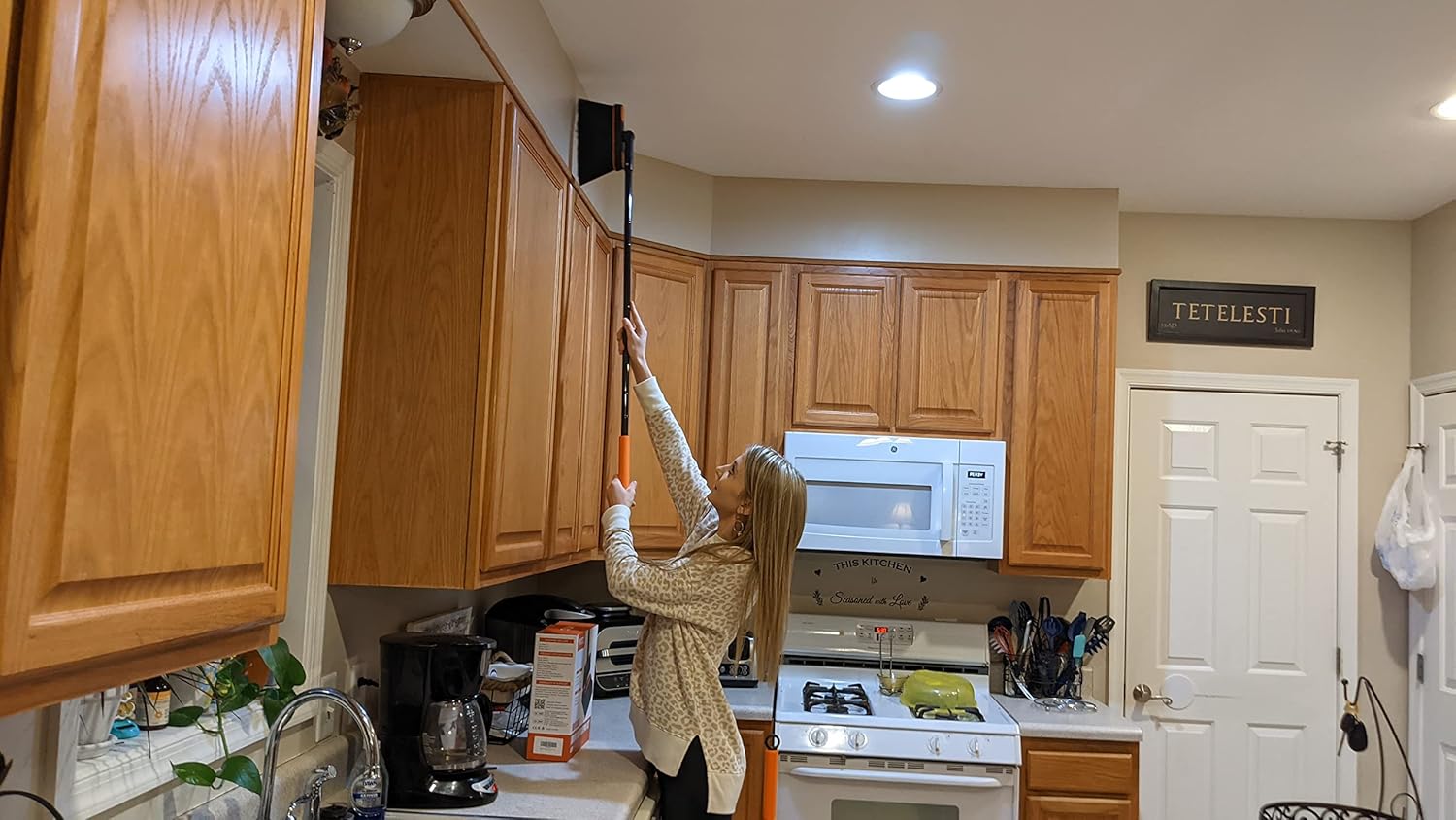 UPGRADED FUNCTION: Two snaps on the broom head works with non-woven fabric for window cleaning, mopping, sweeping, etc. Besides, the broom is engineered 180°swivel head, making it easy to clean the bottom of beds, tables, or other blind angles.