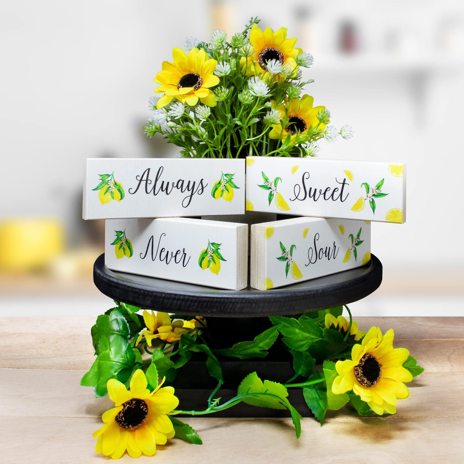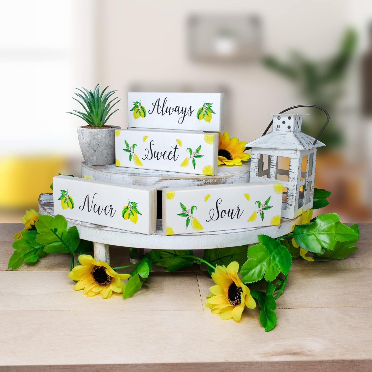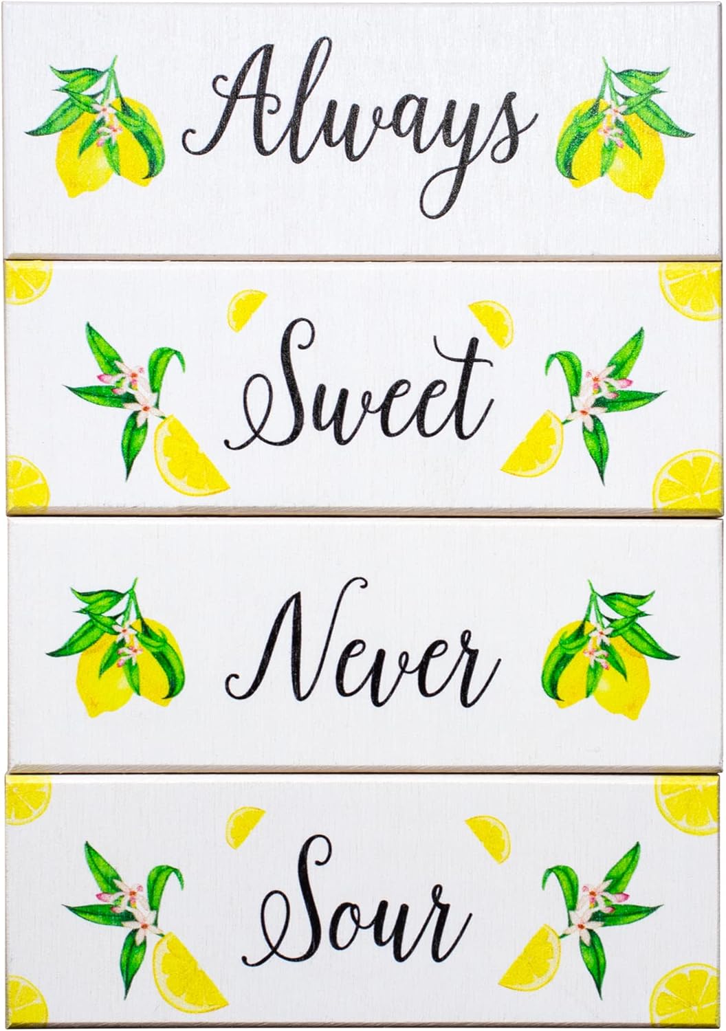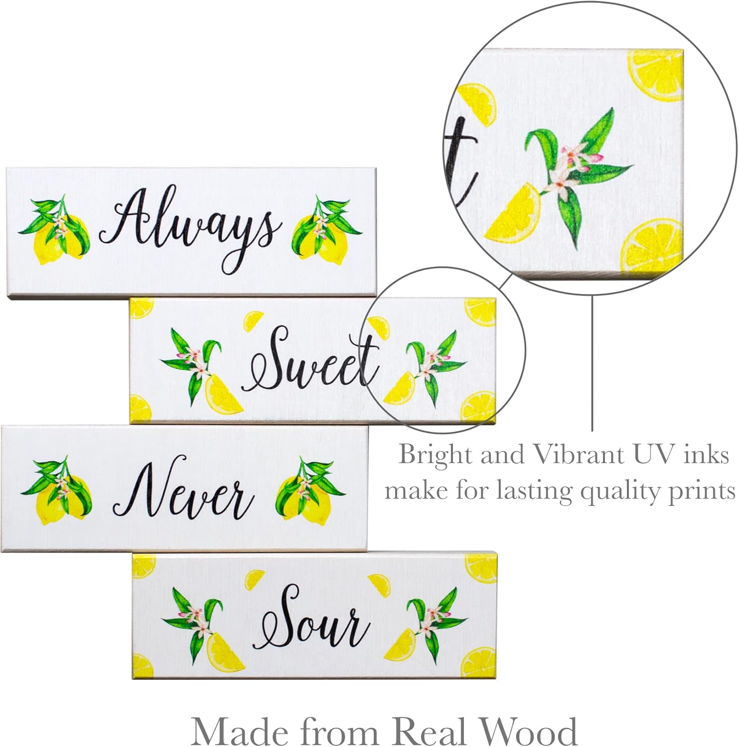 JennyGems Always Sweet Never Sour Lemon Wooden Signs for Tiered Tray Shelf or Table, Lemon Kitchen Decor, Made in USA