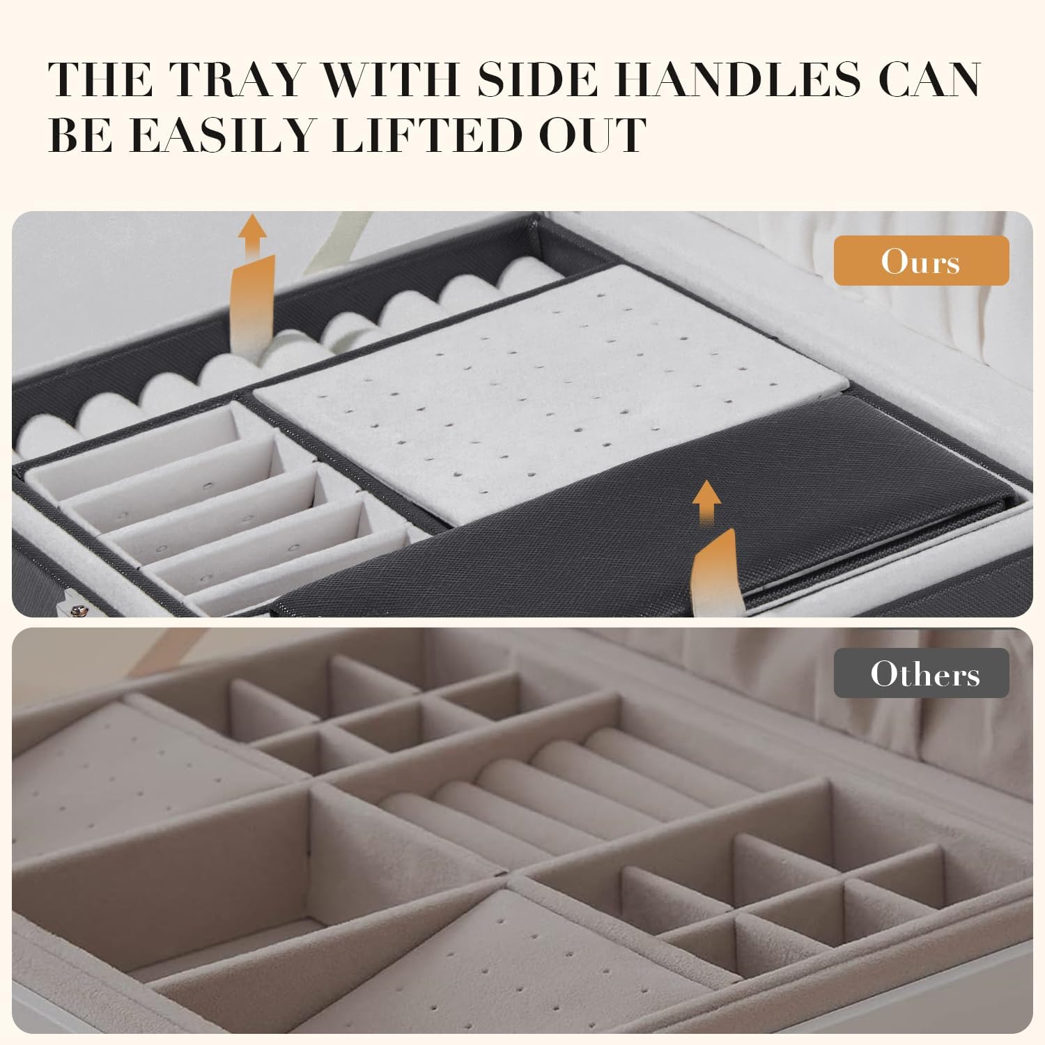 【Reasonable Partition, Custom Space】This jewelry box for women is a must-have for any woman. It has 2 layers, each compartment has different storage areas, like ring slots, earring holes, necklace hooks, and adjustable shelves to fit all your jewelry securely in place so they stay organized and tangle-free.