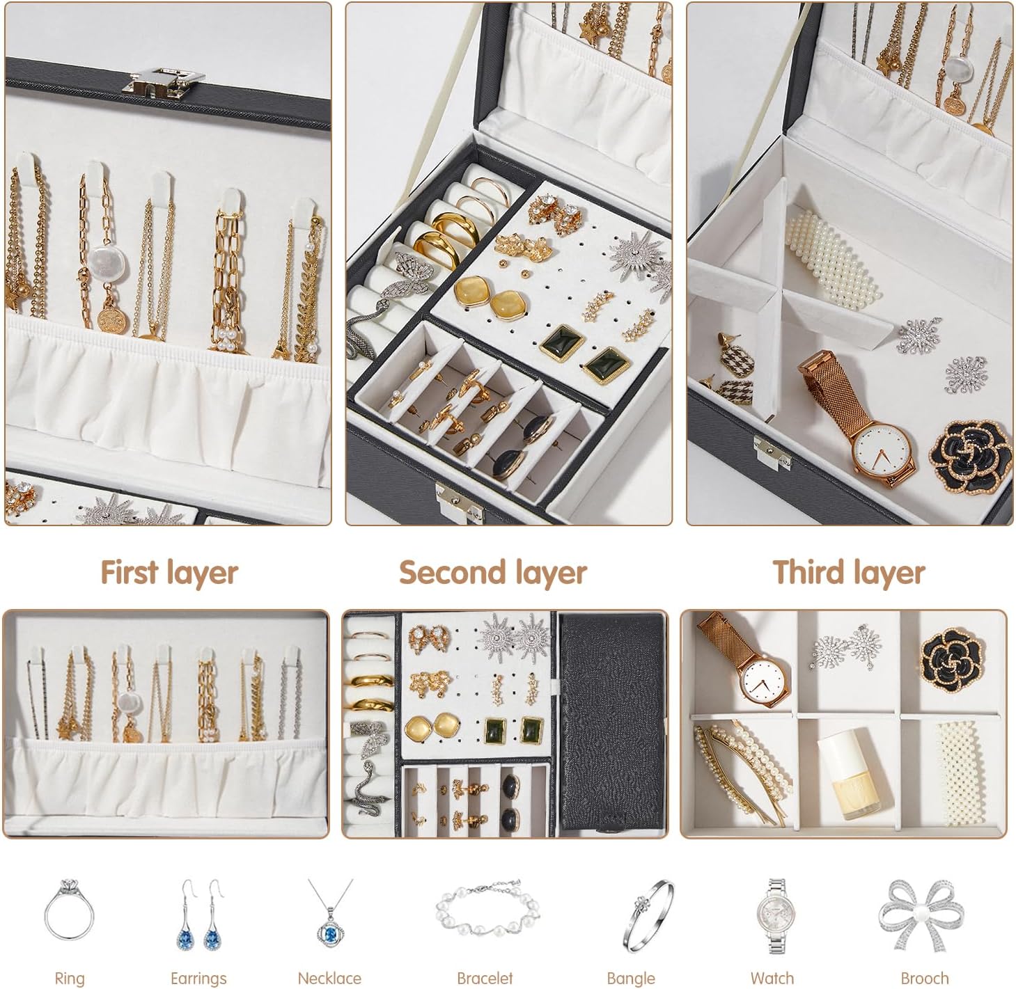 【Perfect Gift】Our 2 layers PU leather jewelry holder organizer is ideal for jewelry enthusiasts and your lover as Valentine’s Day Gift, Birthday Gift, Mother’s Day Gift, Christmas Gift, Thanksgiving Day Gift,Anniversary Day Gift, and Wedding Gift for girls and women.