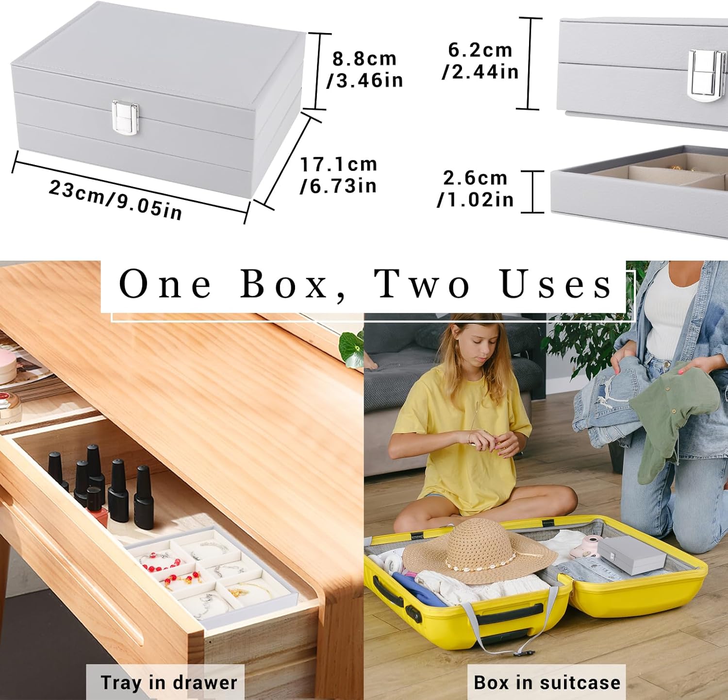 【Space Saving Jewelry Boxes】Our jewelry box for women keeps all your jewelry organized and easily accessible. From there, you have a neat dresser that saves a lot of space. In addition, our jewelry case comes with removable trays, so you can carry only the top jewelry box organizer when traveling, reducing weight and saving space.