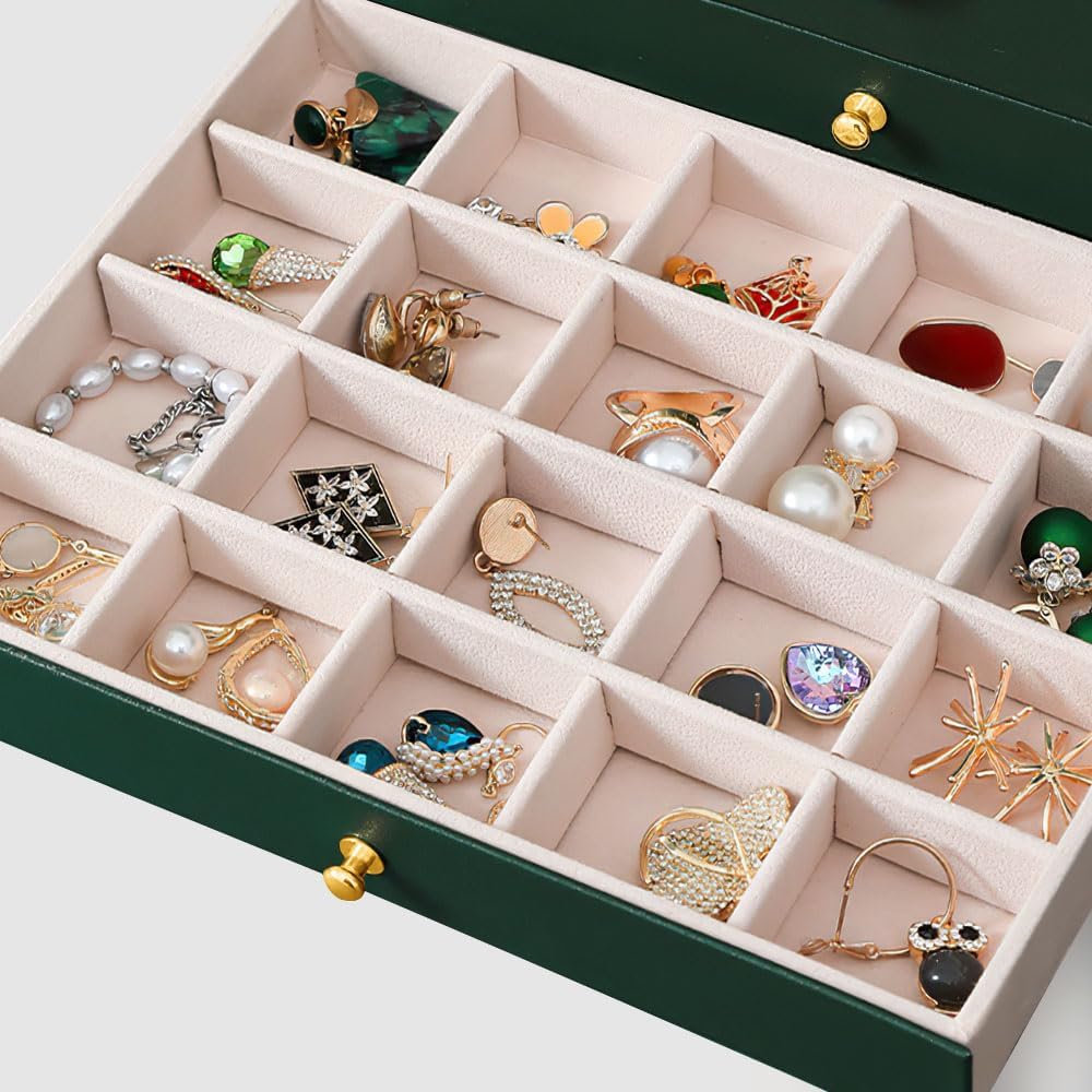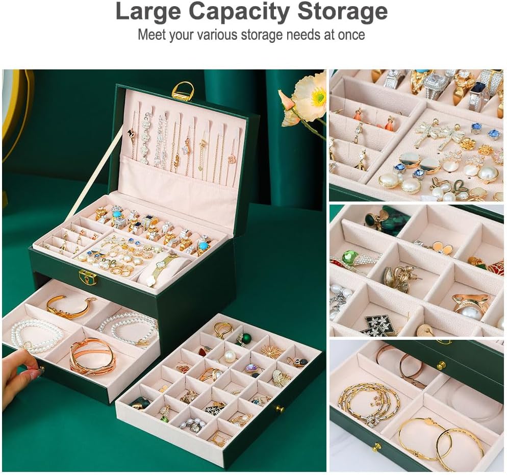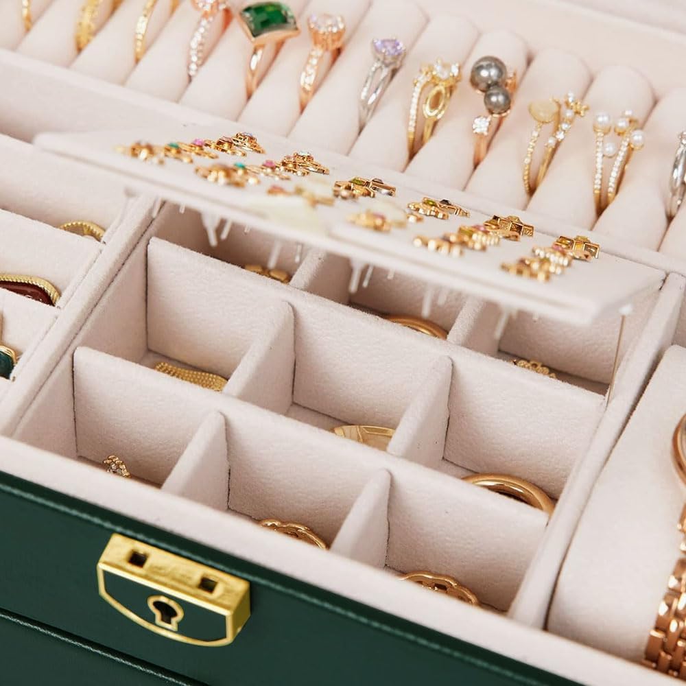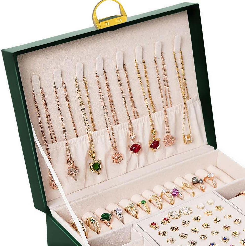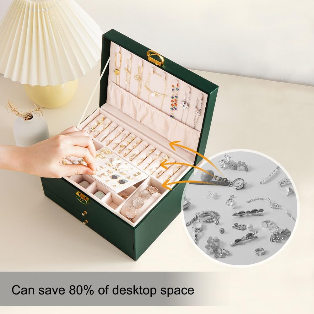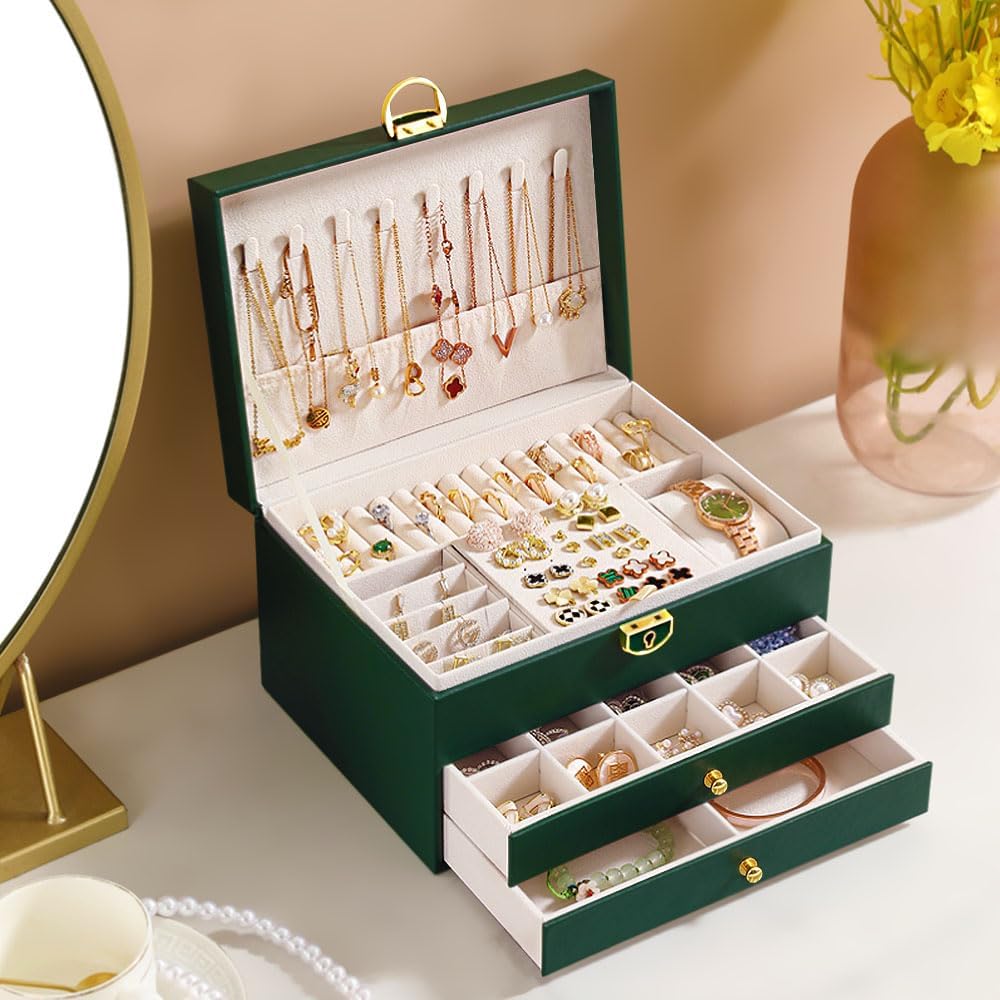 Jewelry Box,3-Layer Jewelry Organizer Box for Women Girls,Jewelry Storage Case for Necklaces Earrings Bracelets Rings Watches (Green)