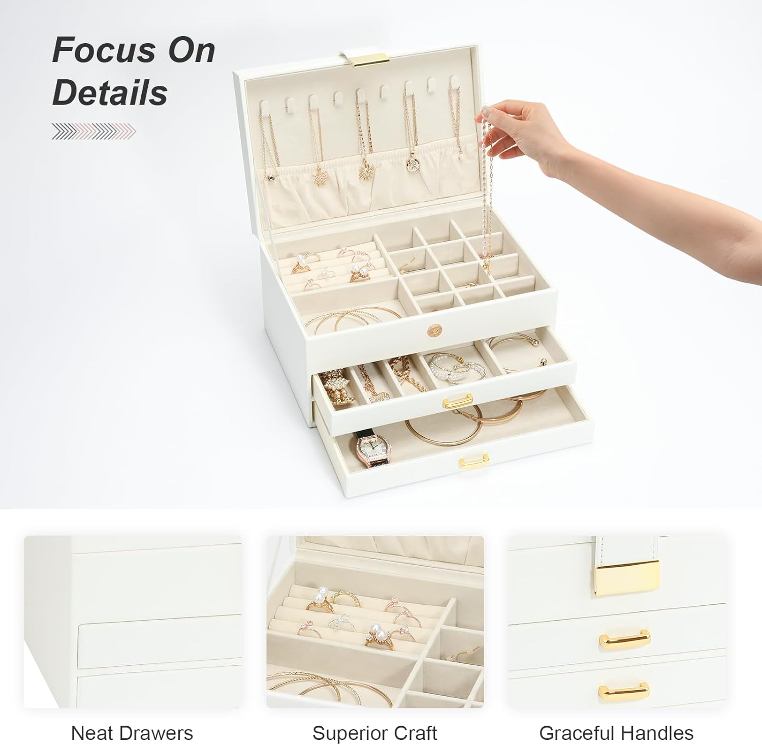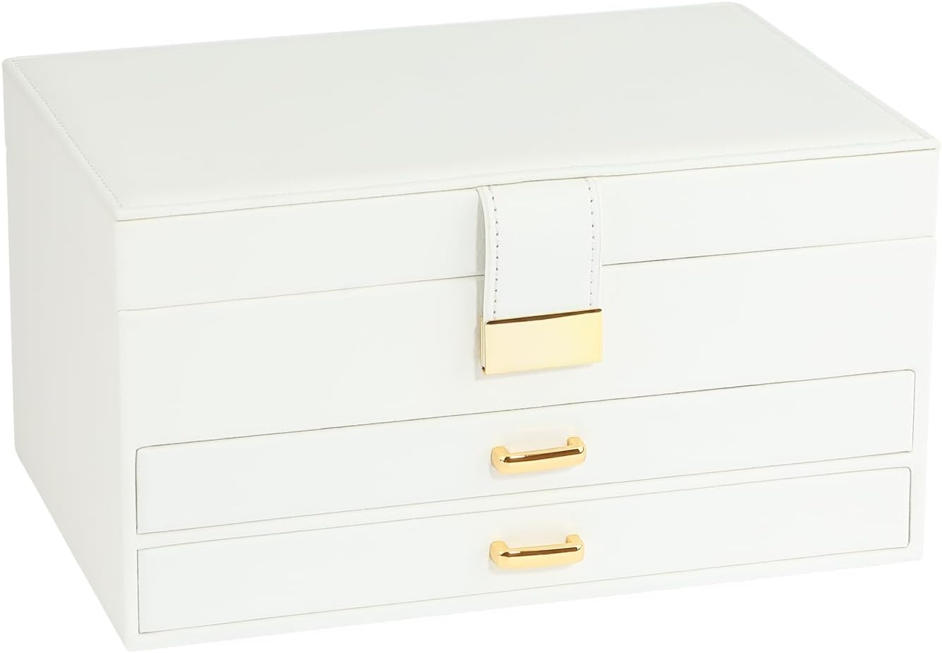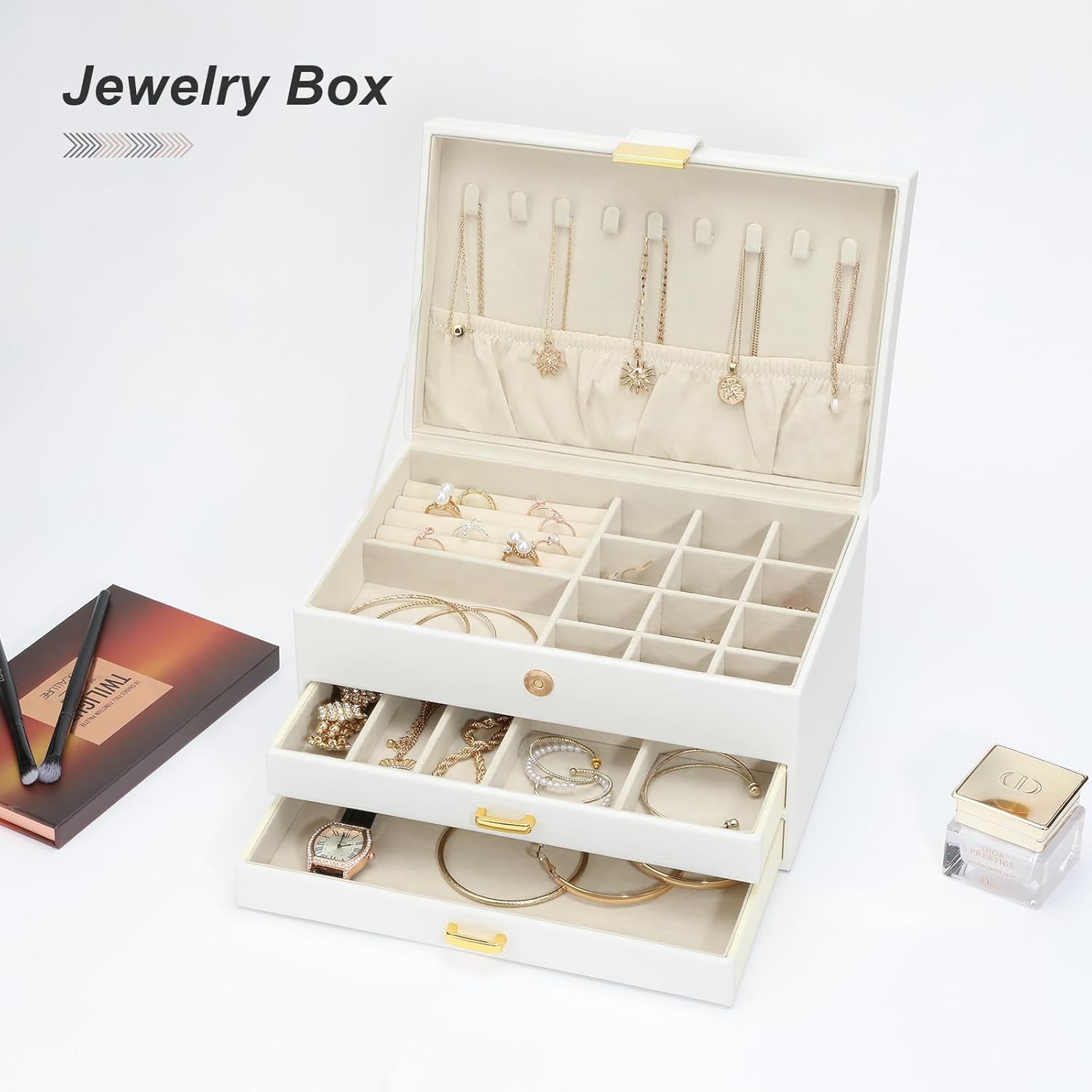 Jewelry Organizer Box, Women Jewelry Box 3 Layers with 2 Drawers, Large Jewelry Organizers Jewelry Boxes Display Earring Necklace Watch Bracelet and Rings, White