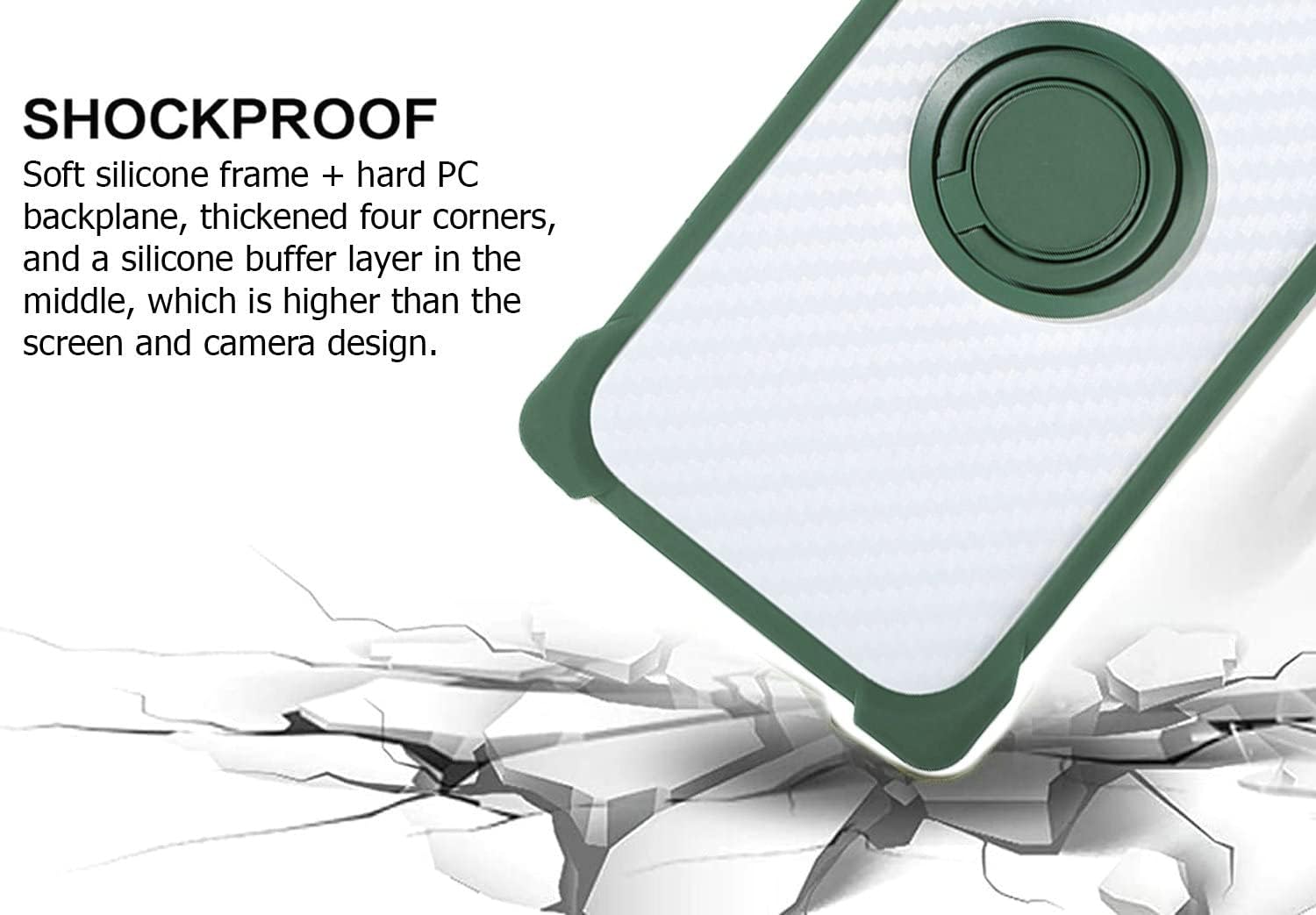 Soft silicone frame + hard PC backplane, the thickened 4 protective corners are 2MM higher than the screen and camera