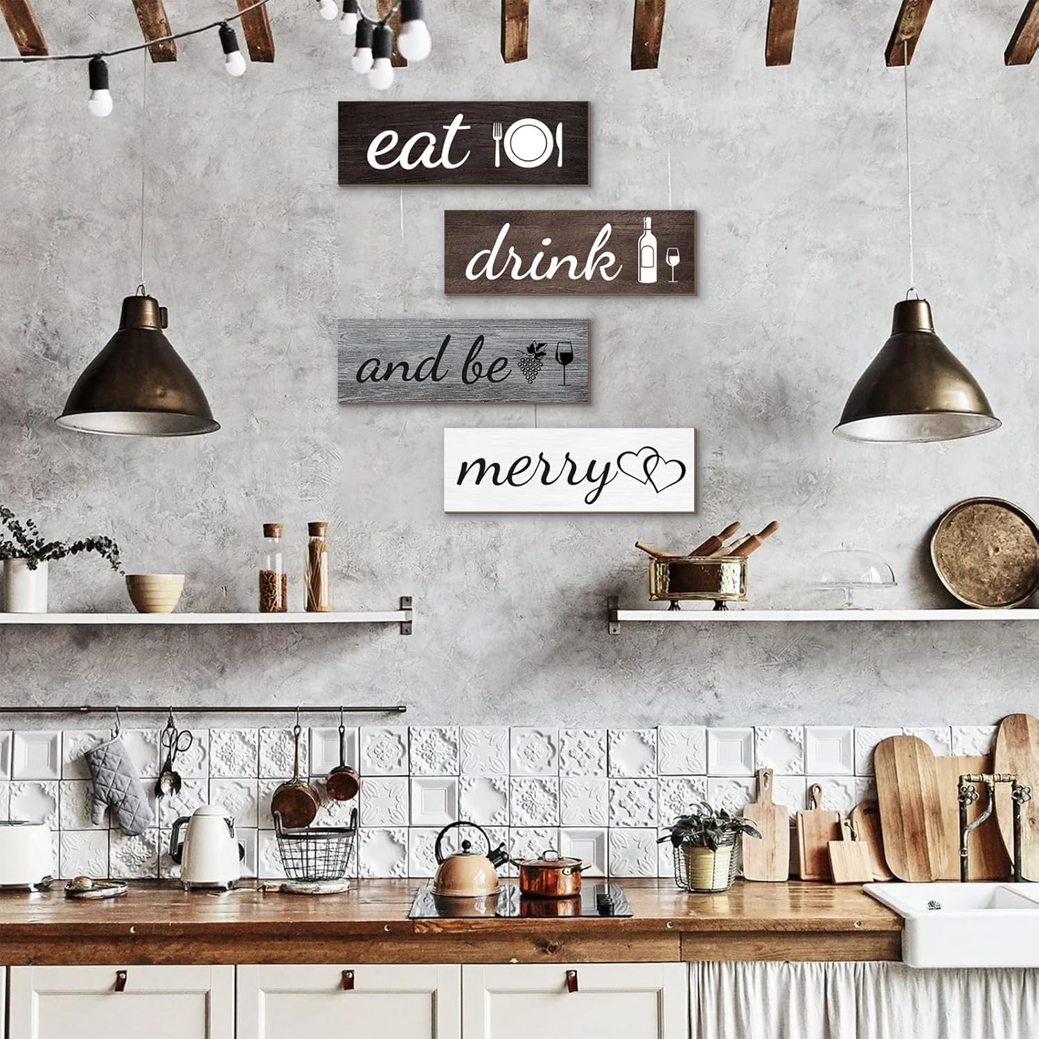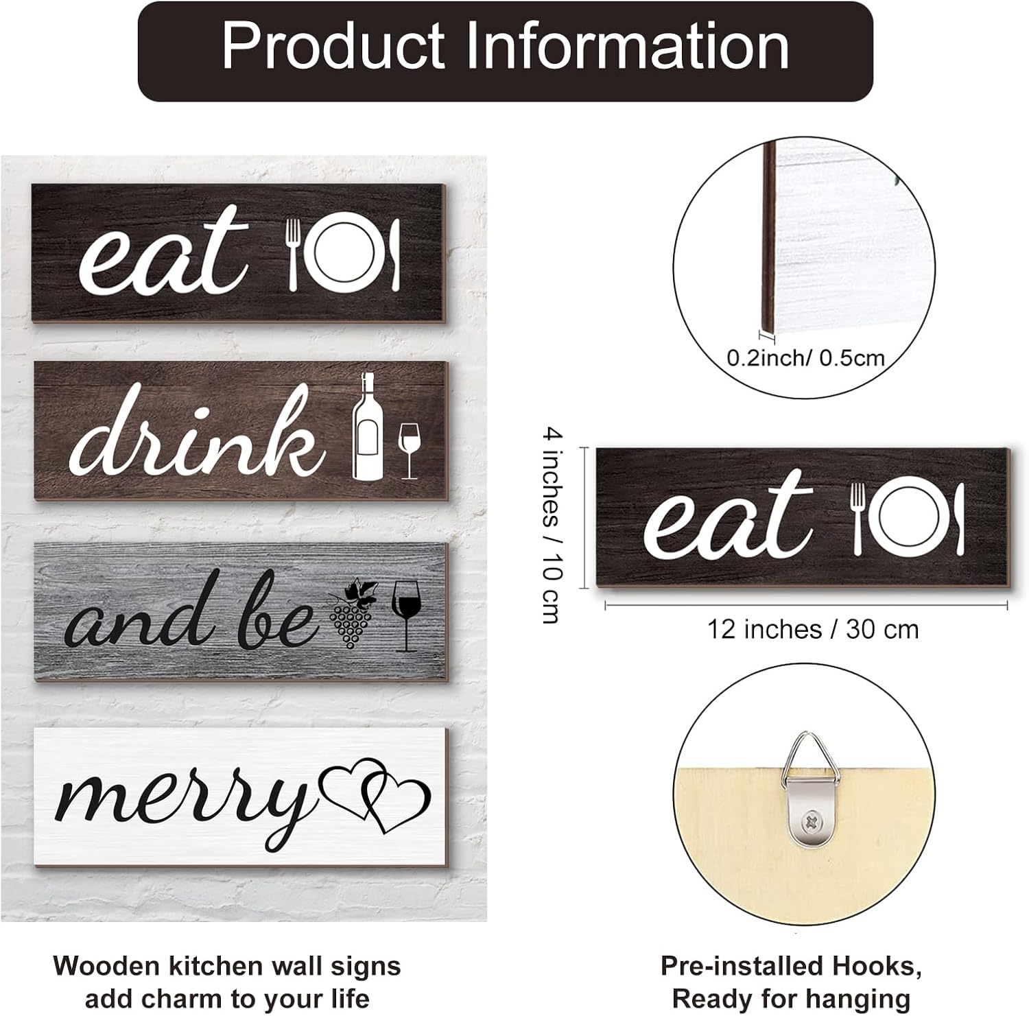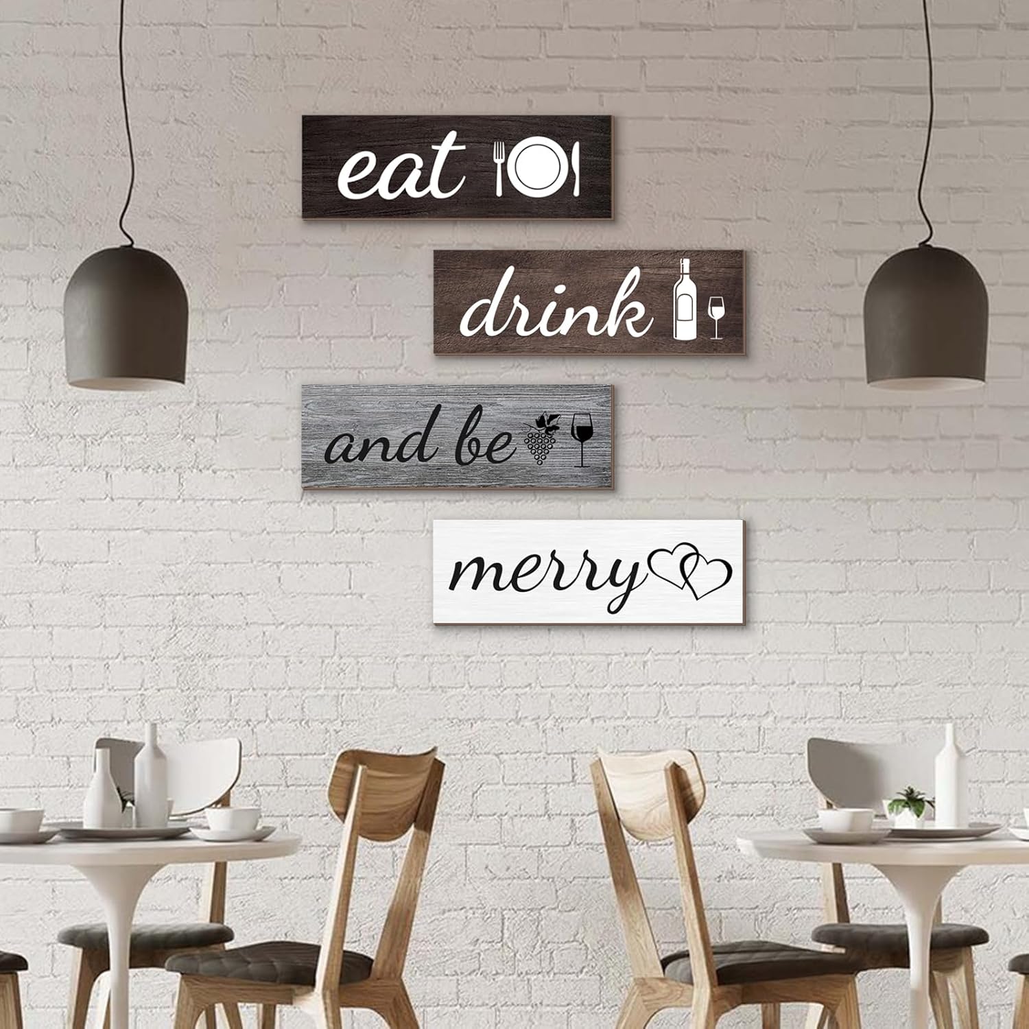 Joyhawk 4 Pcs Rustic Kitchen Decor and Accessories, Farmhouse Kitchen Wall Decor, Eat Signs Kitchen Wall Decorations for Home, Modern Eat Drink and Be Merry Art Signs for Dining Room