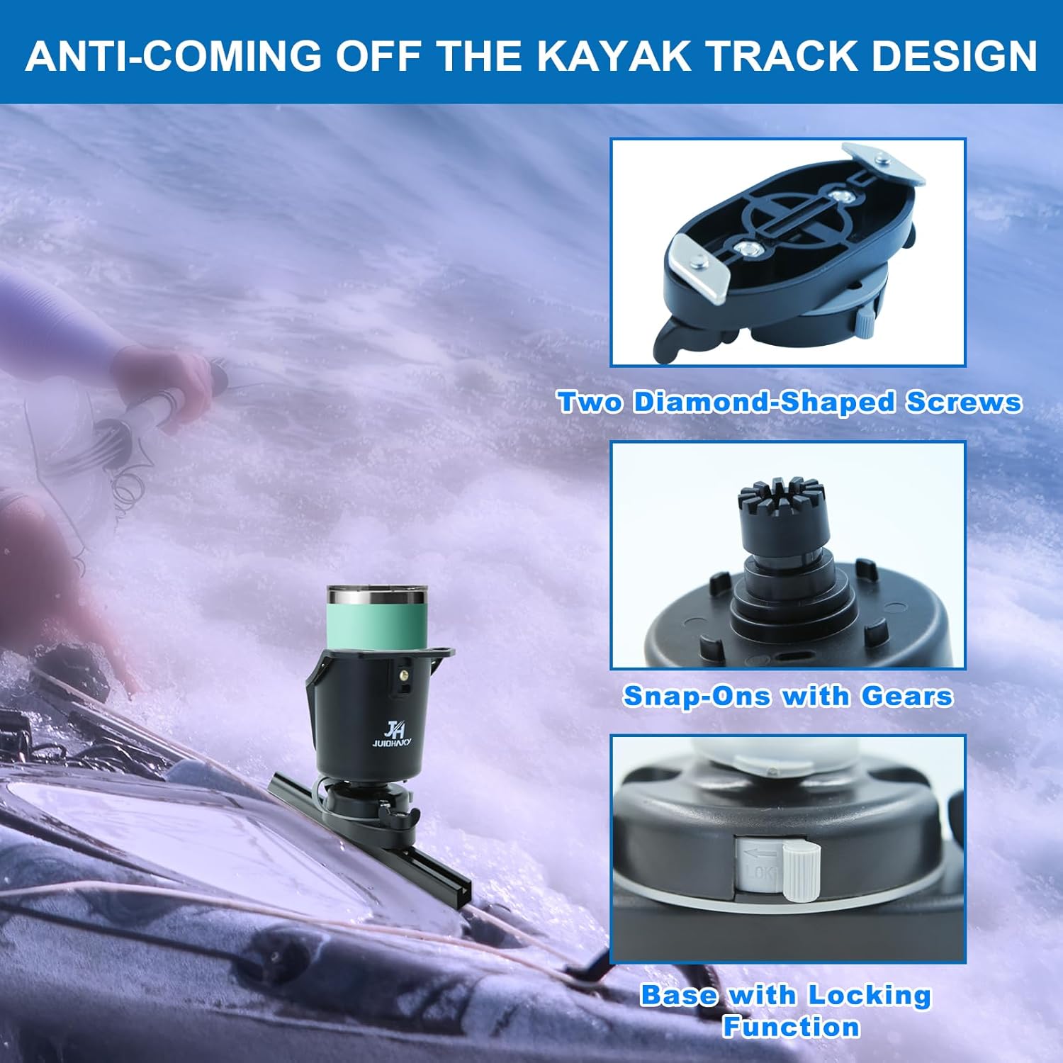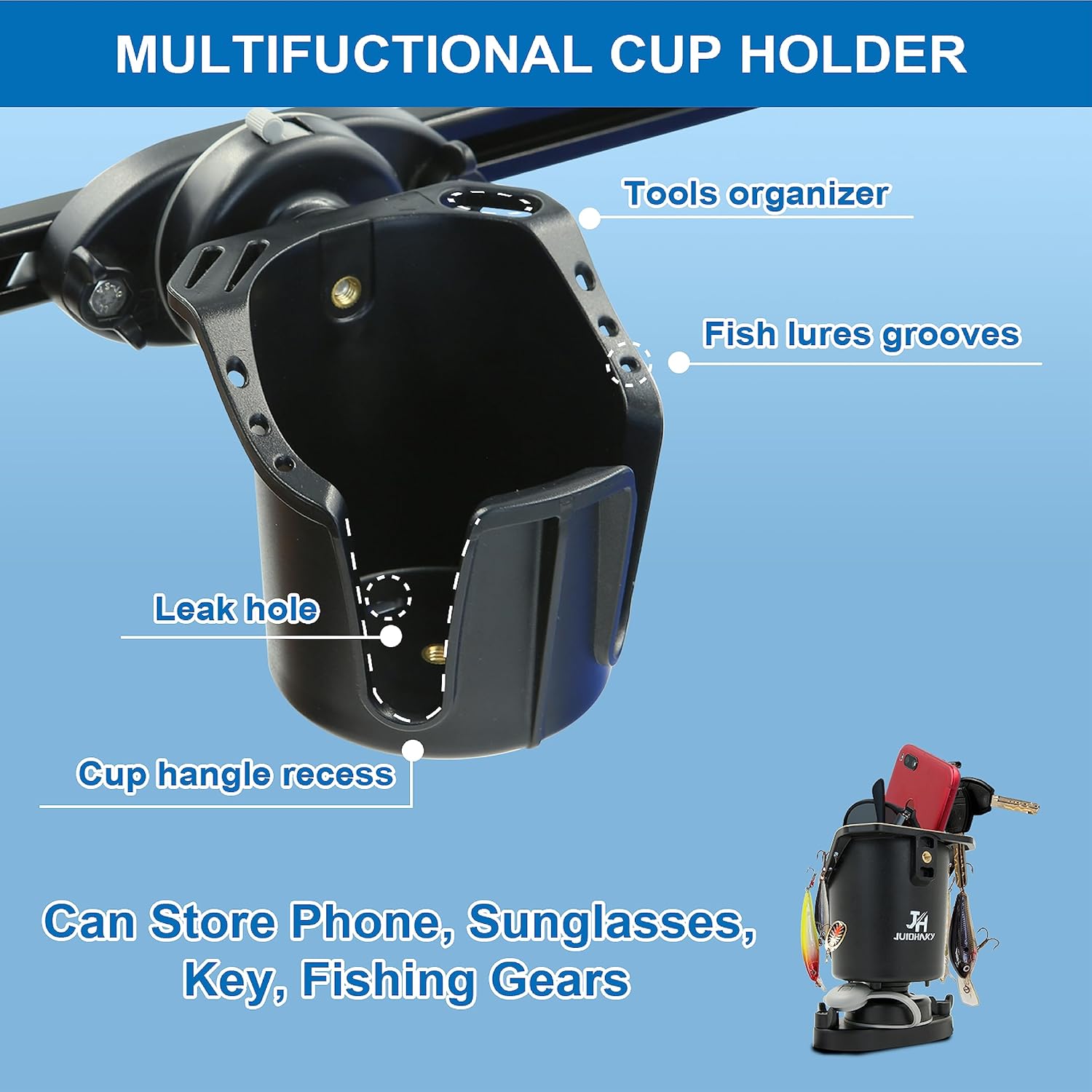 JUIHOHAKY Kayak Cup Holder, Fits Vertical & Horizontal Track Mount Install, Multi-Functional Cup Holder for Kayak Accessories, Ideal for Drinks, Fishing Gear and Phone Holder