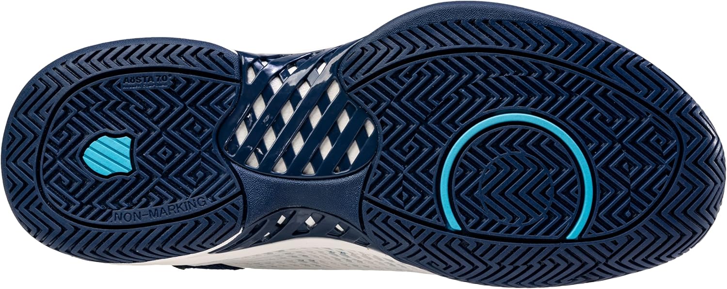 K-Swiss is the first brand to introduce a court shoe specifically designed for Pickleball, one of the fastest growing sports in the United States. The Express Light Pickleball was created to give players a comfortable, lightweight, breathable shoe that supports on-court movement and performance needed for the sport. It is an all-around shoe, perfect for the new or frequent player. Included on the shoe is a K-Swiss Pickleball logo and customized Pickleball sockliner. Ideal for hard court or clay court playing surfaces. We recommend ordering a 1/2 size up from your normal street shoe size for best fit.