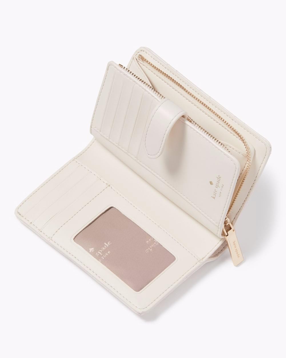 Kate Spade Wallet for Women Carey Wallet in Smooth Quilted Leather, Parchment100, Wallet