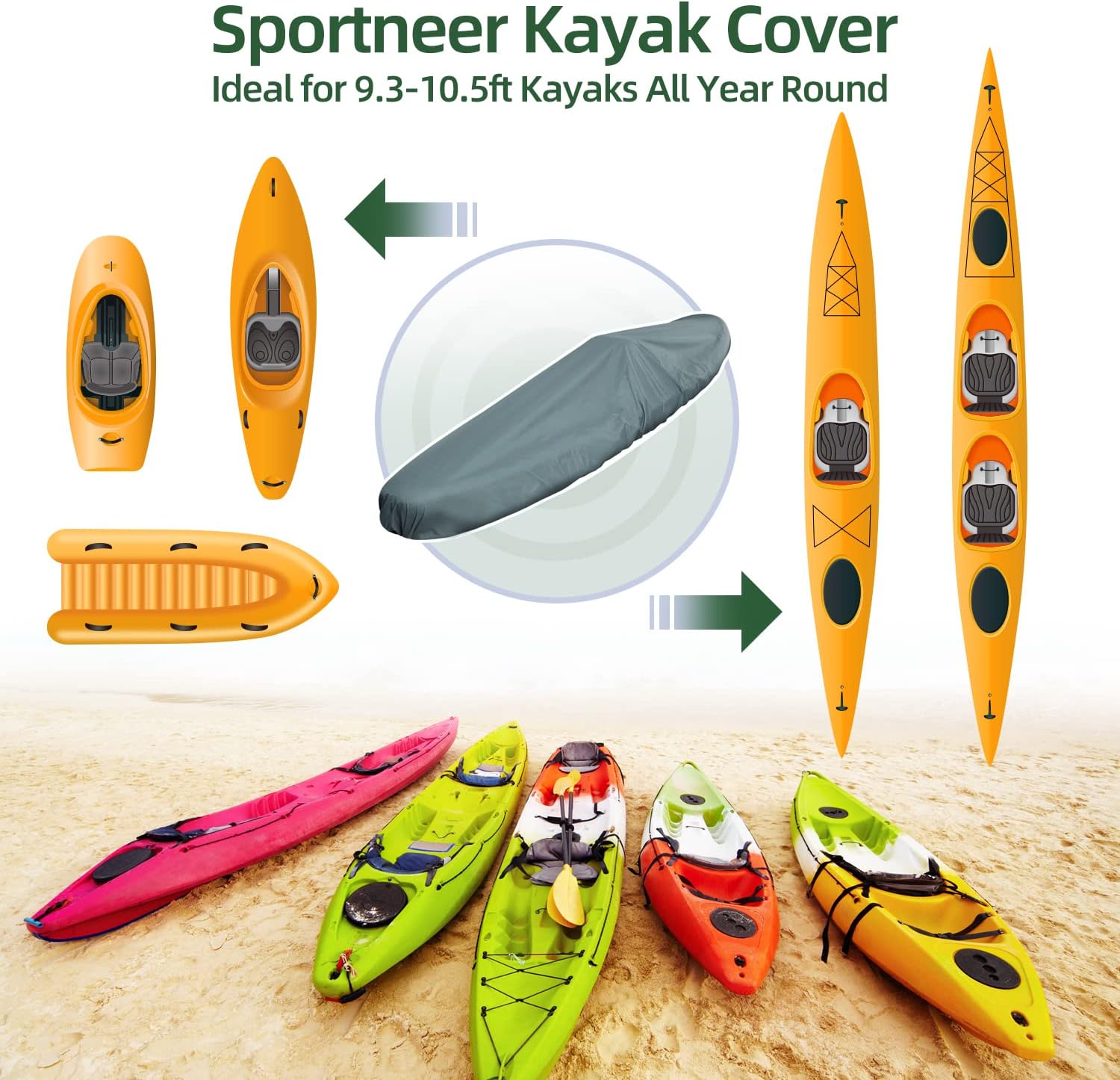 Kayak Cover, Sportneer Waterproof Kayak Covers for Outdoor Storage 9.3-10.5ft Kayak Cover UV Sunblock Shield Protector Kayak Canoe Boat Accessories for Outdoor with Storage Bag 3 Adjustable Bands