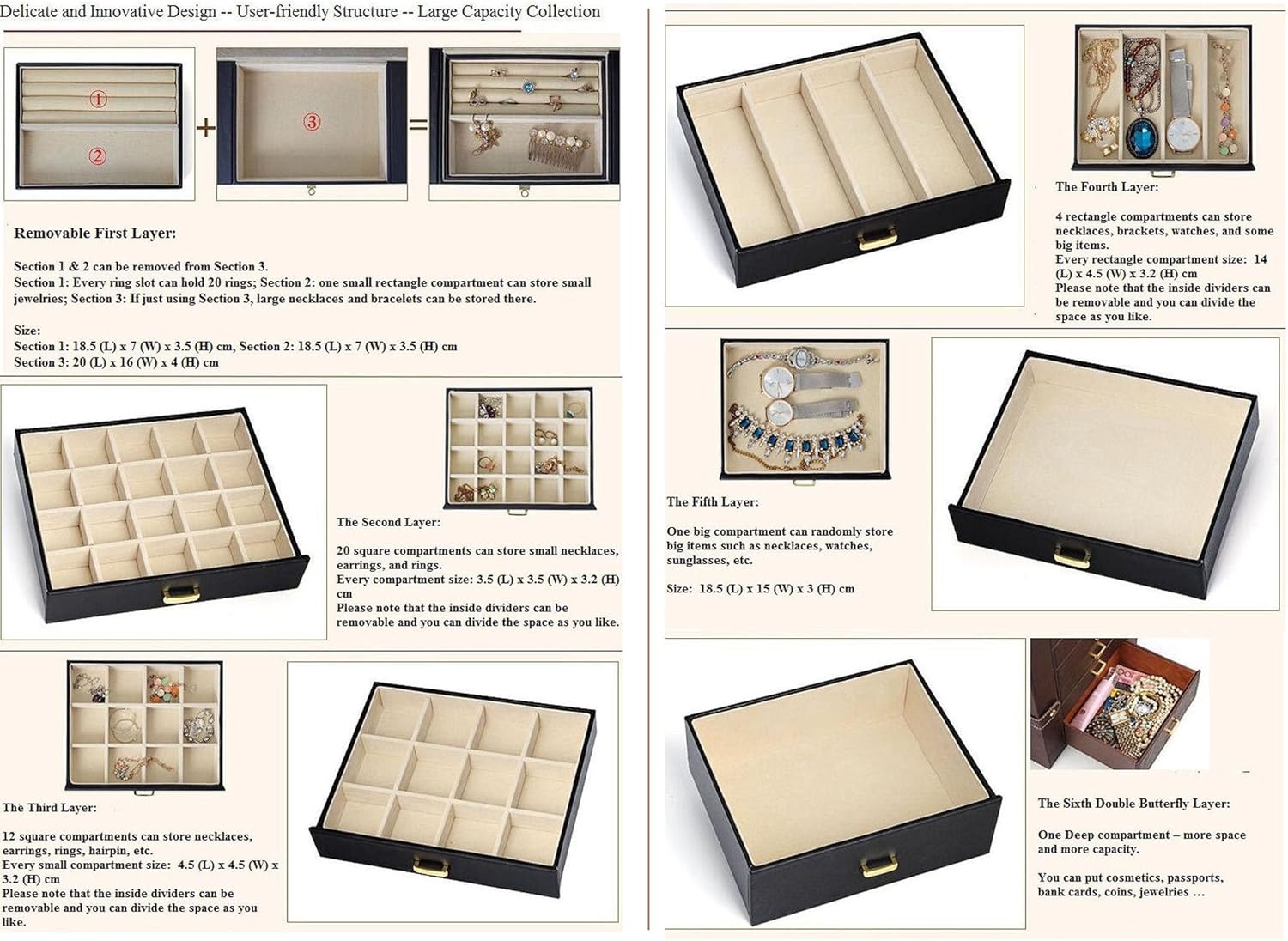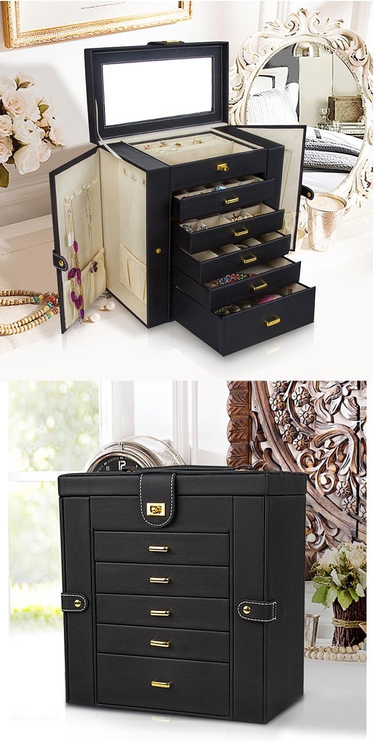 Kendal Extra Large Jewelry Box Jewelry Case PU Leather 6 Tier 5 Drawers Large Storage Capacity with Mirror Jewelry Storage Organizer Great Gift Also Good For Watches LJC-SHD5BK (black)