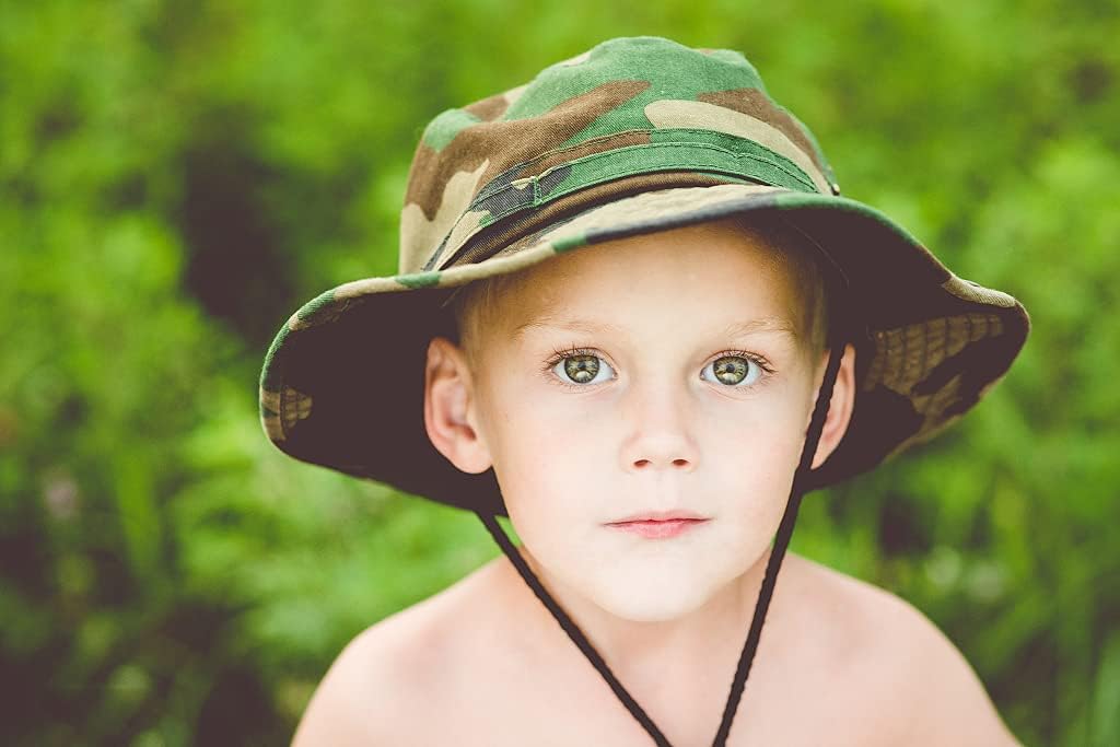 Camo Sun Hat Kids Boonie – UV Protection Outdoor With Chin Strap