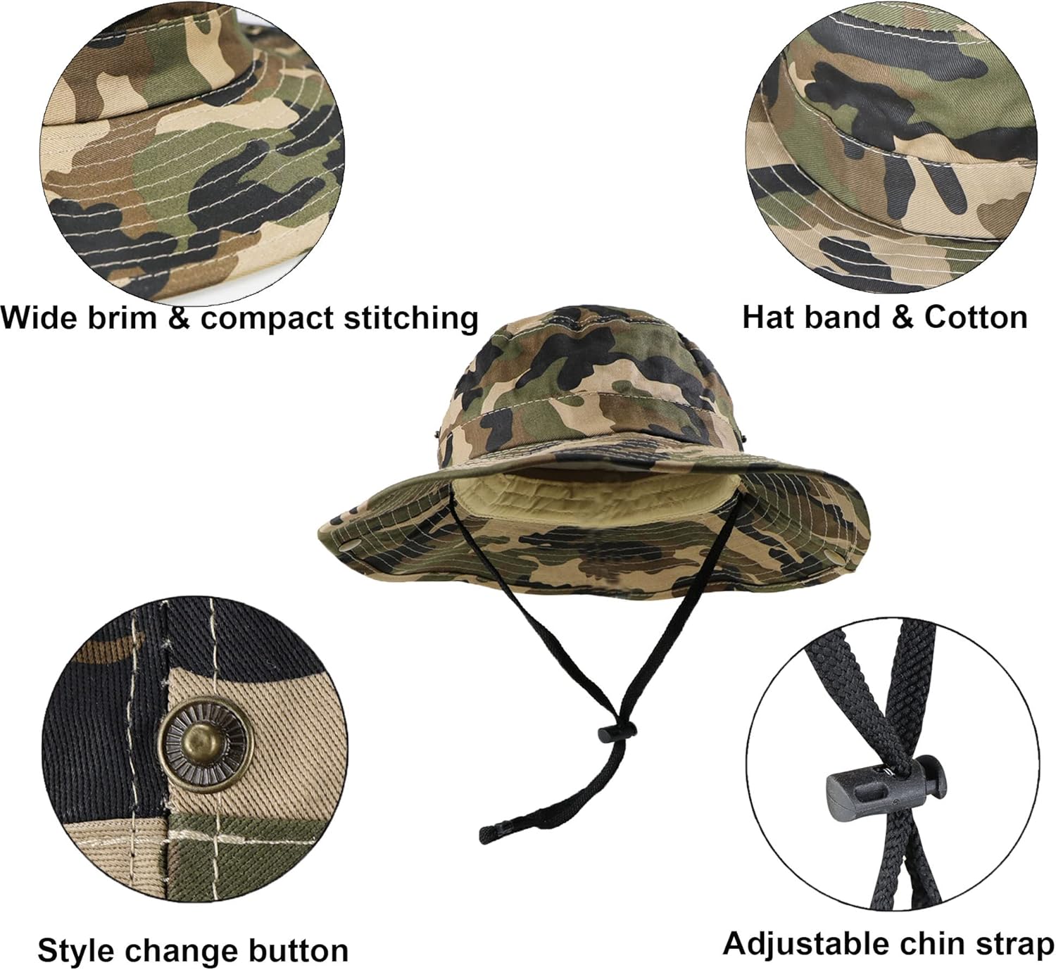 Kids Camouflage-Sun-Hat UV-Protection Camo-Boonie – with Chin-Strap Bucket Hat Outdoor Fishing for 5-14 Years Old