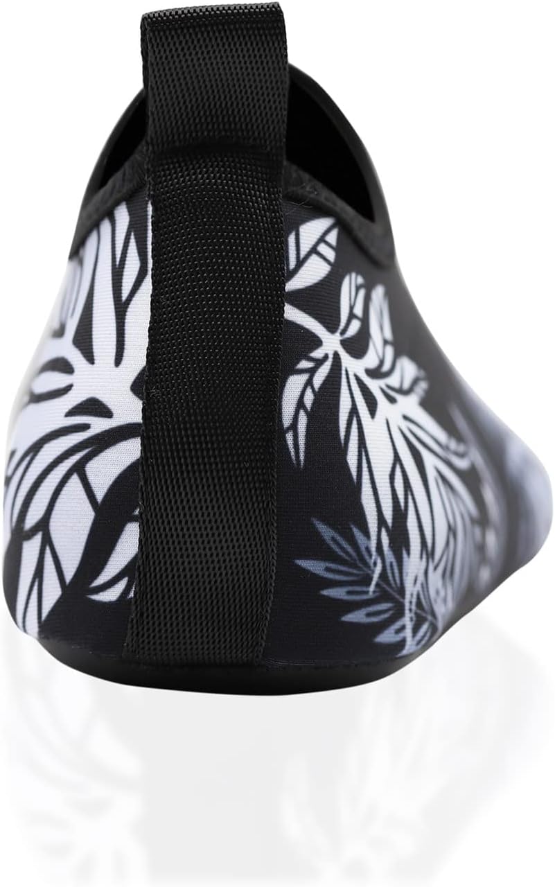Light,flexible and compressible material; Easy to slip on, fold and carry.Low-profile booties design,thickened sole; Protect your feet from hot sand, cold water, and everything in-between.Comes in a ton of trendy colors and designs – perfect for the whole family!Practical: great for water park, water class, running, cruise, hanging out, aqua zumba, aqua therapy, waterfall hikes,yoga, etc.