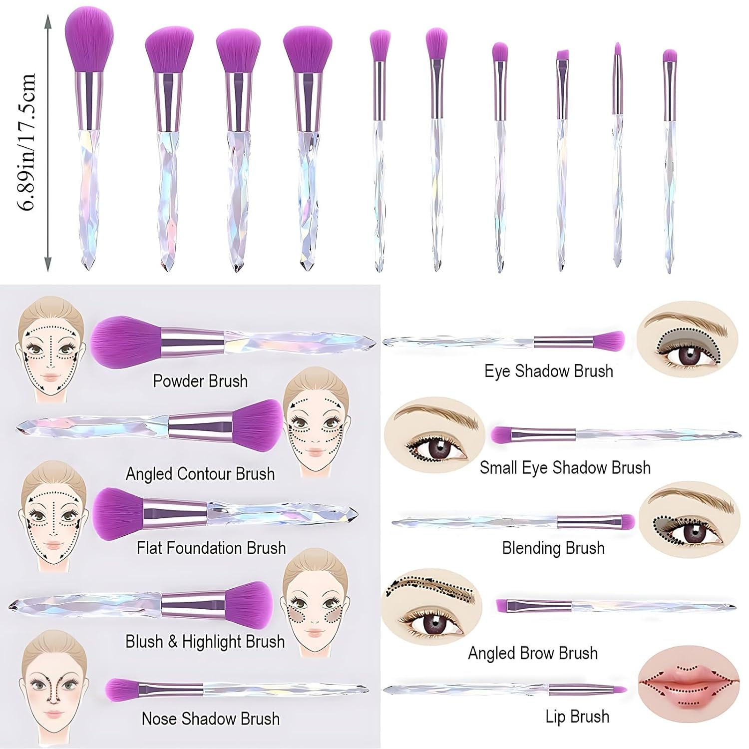 Kingtree Makeup Brush Set, 10PCS Crystal Makeup Brushes Premium Synthetic Foundation Powder Concealer Eye Shadow Blush Makeup Brushes Set, Professional Make Up Brush Kit for Girls Ladies
