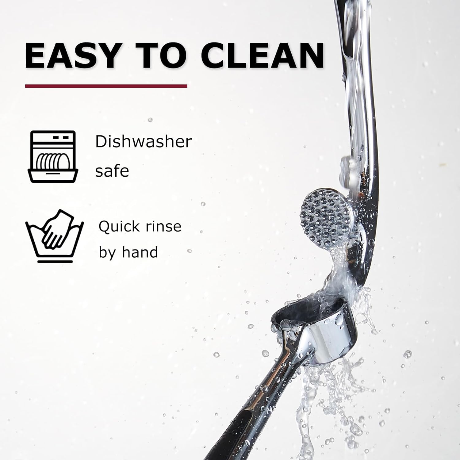 Built to Last – Zinc is an ideal material for garlic presses, it is strong enough to easily press through garlic, withstand the test of time, while the non-reactive material won’t produce funky smells after coming into contact with garlic’s natural acids, when you’re finished, just toss the tool into the dishwasher or give it a quick rinse by hand, the included cleaning brush for some extra help
