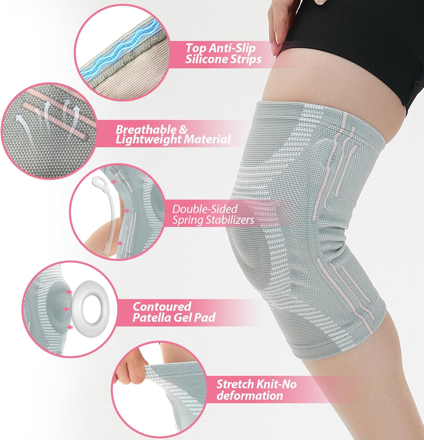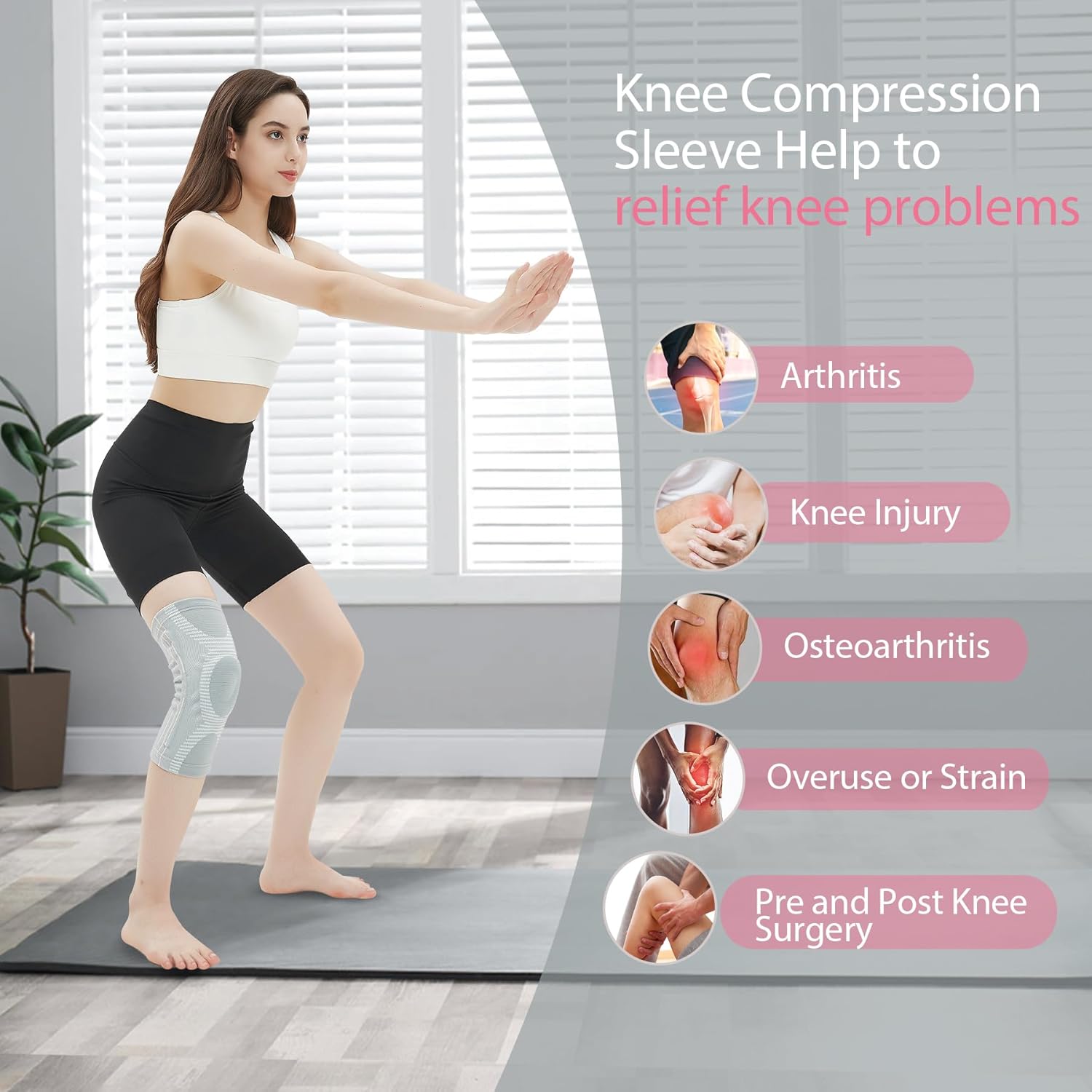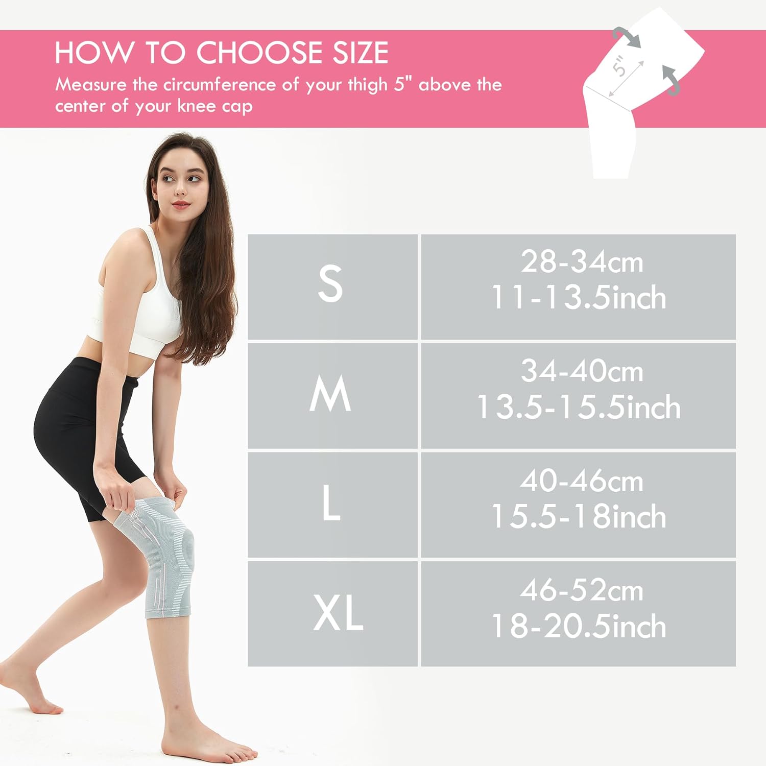 🚩PREMIUM MATERIAL & TECHNOLOGY🚩 Designed with 3D structure woven & knitting technology with High-elastic compression fabric. This knee sleeve disperse the pressure and improves circulation around knee area, which has the effect of keep knee warm and reducing swelling, perfect for pain relief and recovery! Also Non-slip gel strips of this knee support for women could avoid slide or roll during exercise