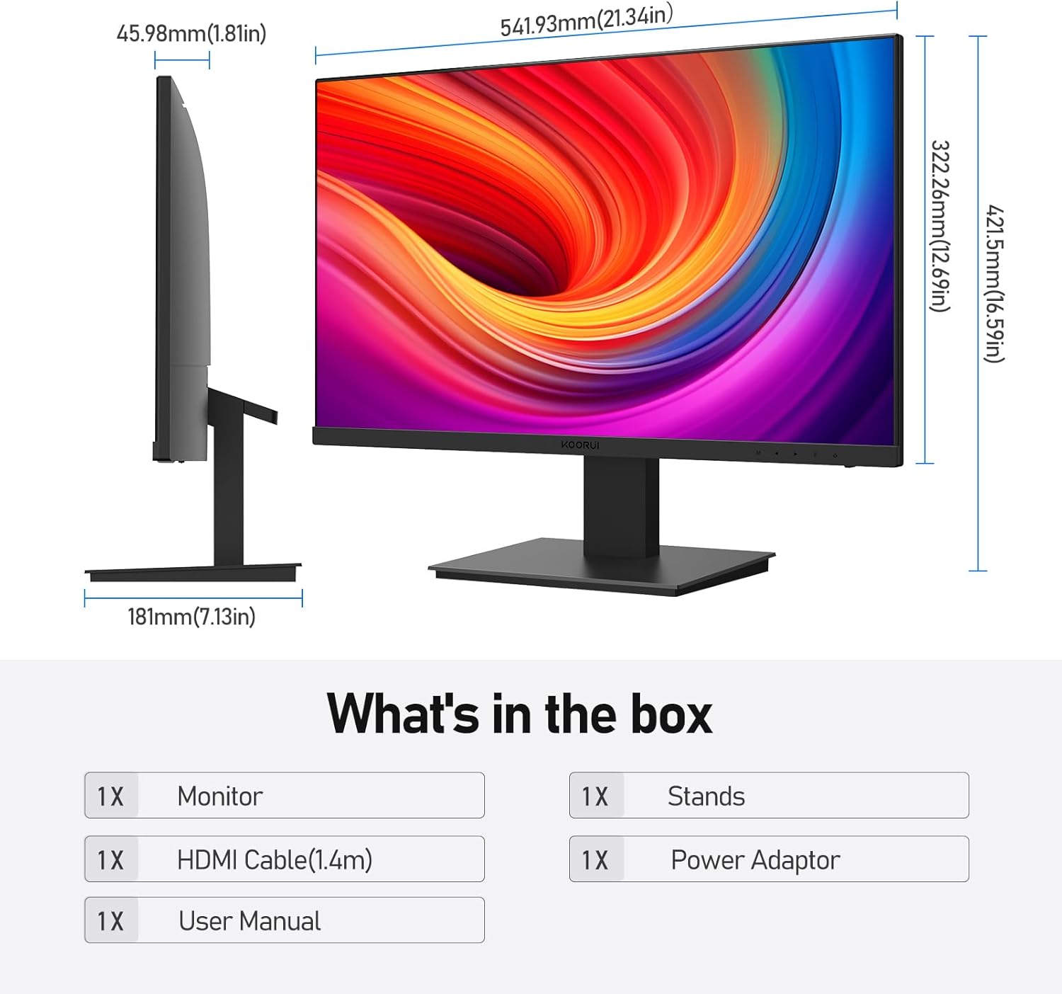 [After-sales Guarantee] KOORUI commit to manufacturing monitors over 20 years, we continue providing high-quality computer monitors and premium services, included 30 days money back, 6 months replacement, 3 years warranty. Any damage, malfunction or missing accessories, please feel free to contact us