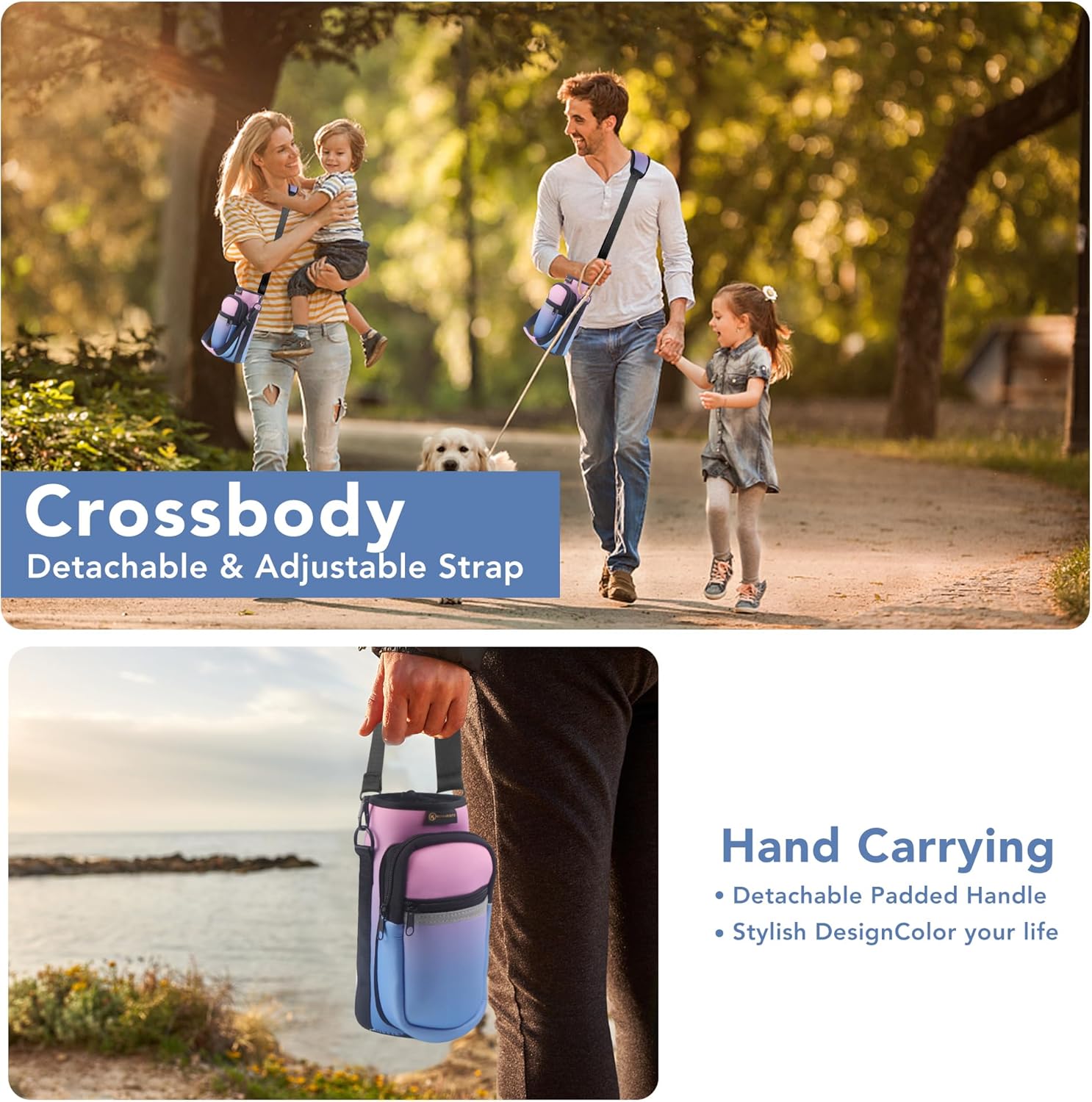 【CONVENIENT TO CARRY】Our water bottle carrier bag comes with adjustable shoulder straps and a handle strap, making it easy for you to carry your water bottle with you wherever you go and making your travels more effortless.