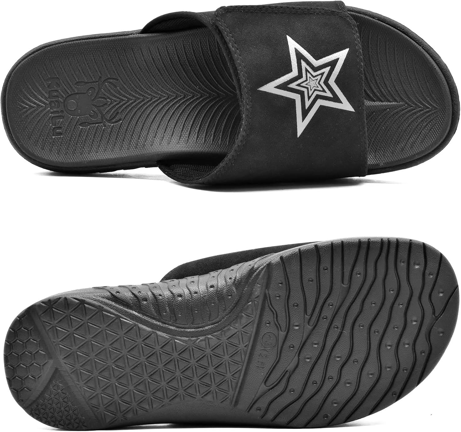 KuaiLu Mens Slides Soft Cushion Sport Sandals with Plantar Fasciitis Arch Support Adjustable Open Toe Summer Slippers Slip on Indoor Outdoor Size 7-15