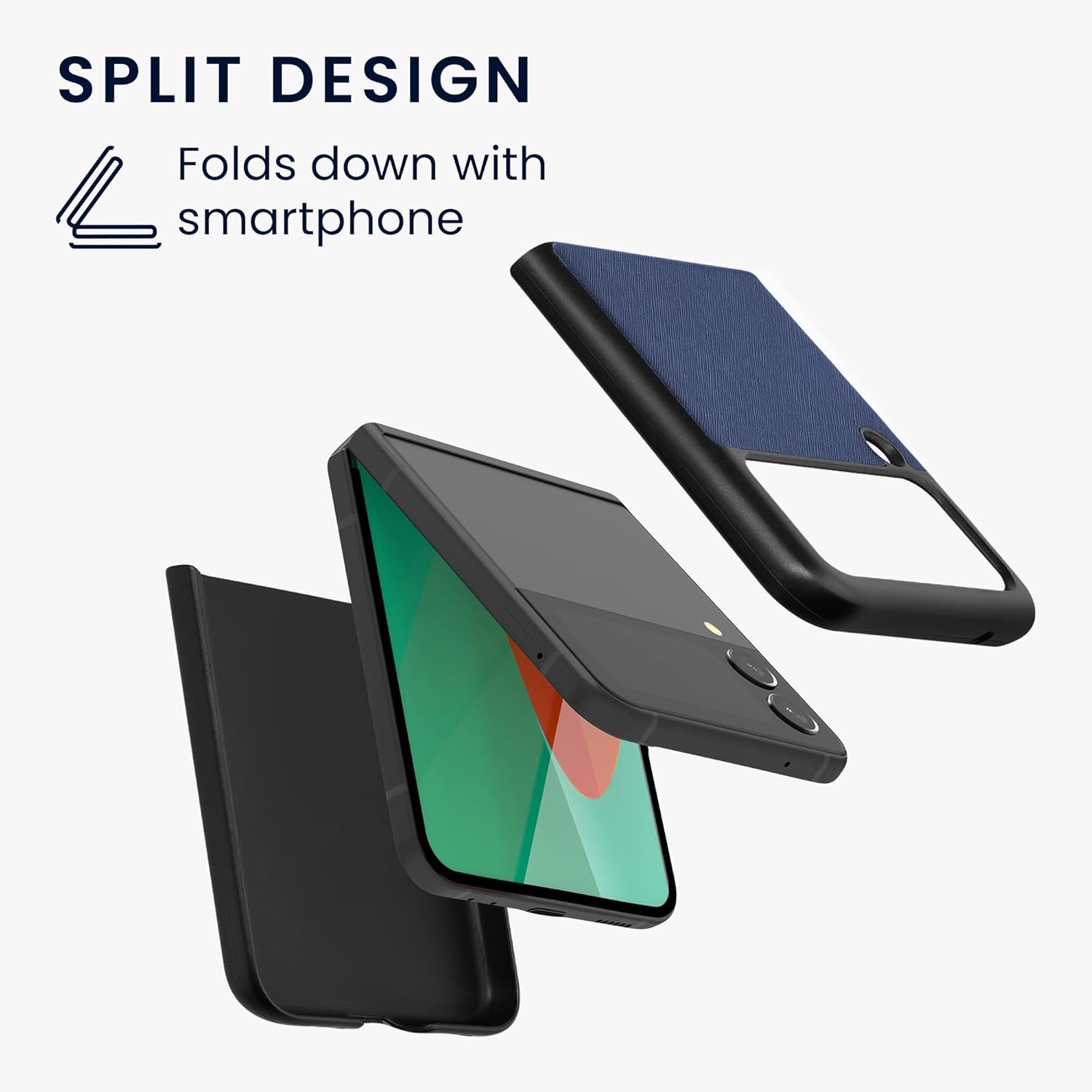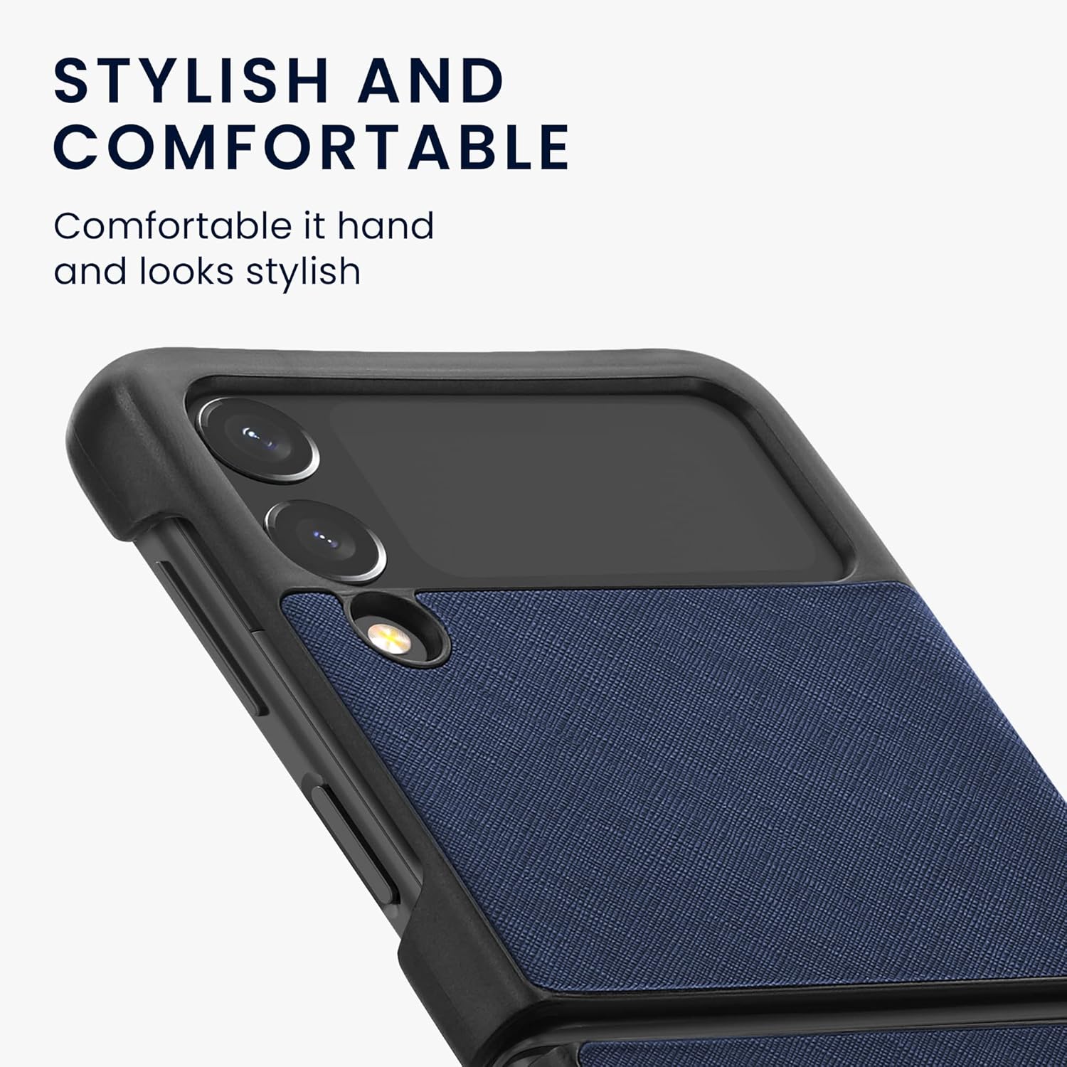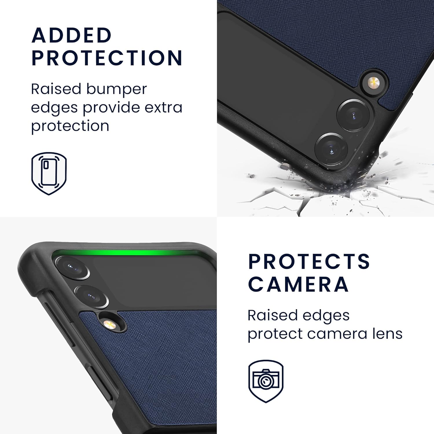 kwmobile Case Compatible with Samsung Galaxy Z Flip 3 5G – Case Synthetic Leather Protective Phone Cover – Dark Blue