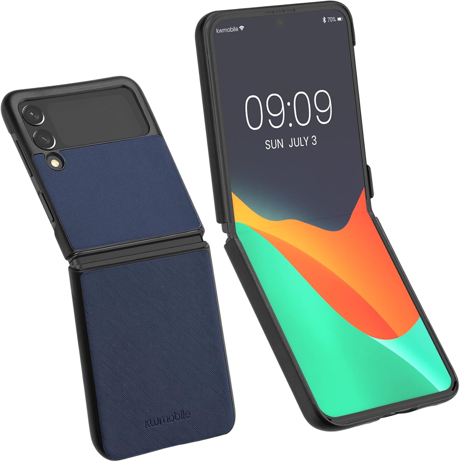 kwmobile Case Compatible with Samsung Galaxy Z Flip 3 5G – Case Synthetic Leather Protective Phone Cover – Dark Blue