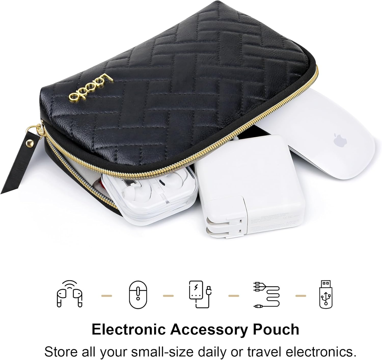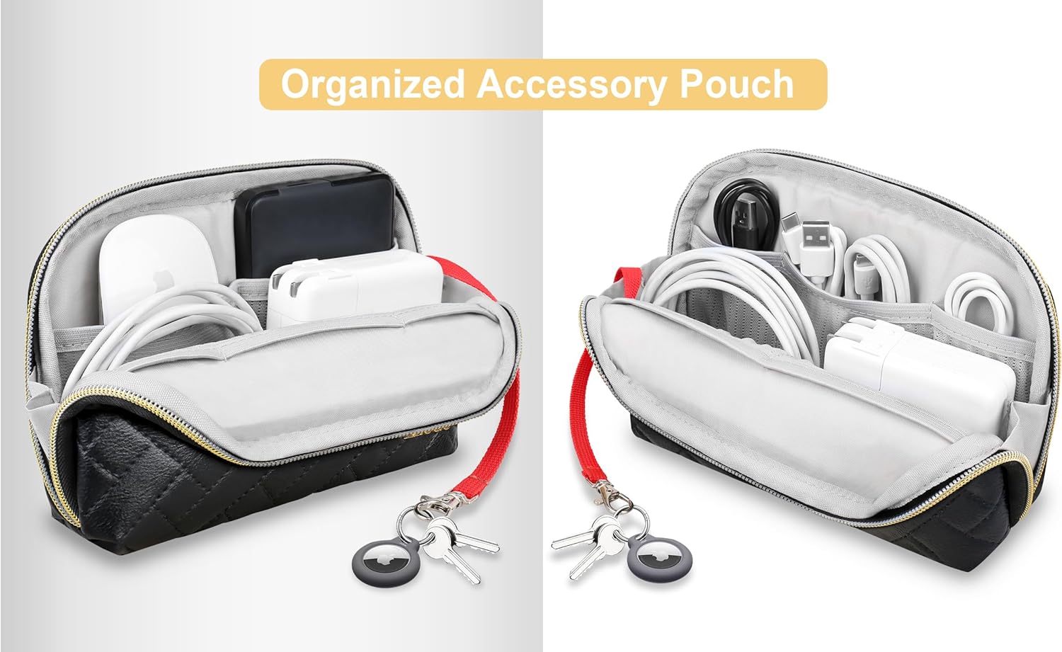 The sleek and modern design, complemented by the upgraded leather zippers, easy-glide action allows you to open and close the pouch with ease, ensuring quick access to your electronic devices and accessories whenever you need them.