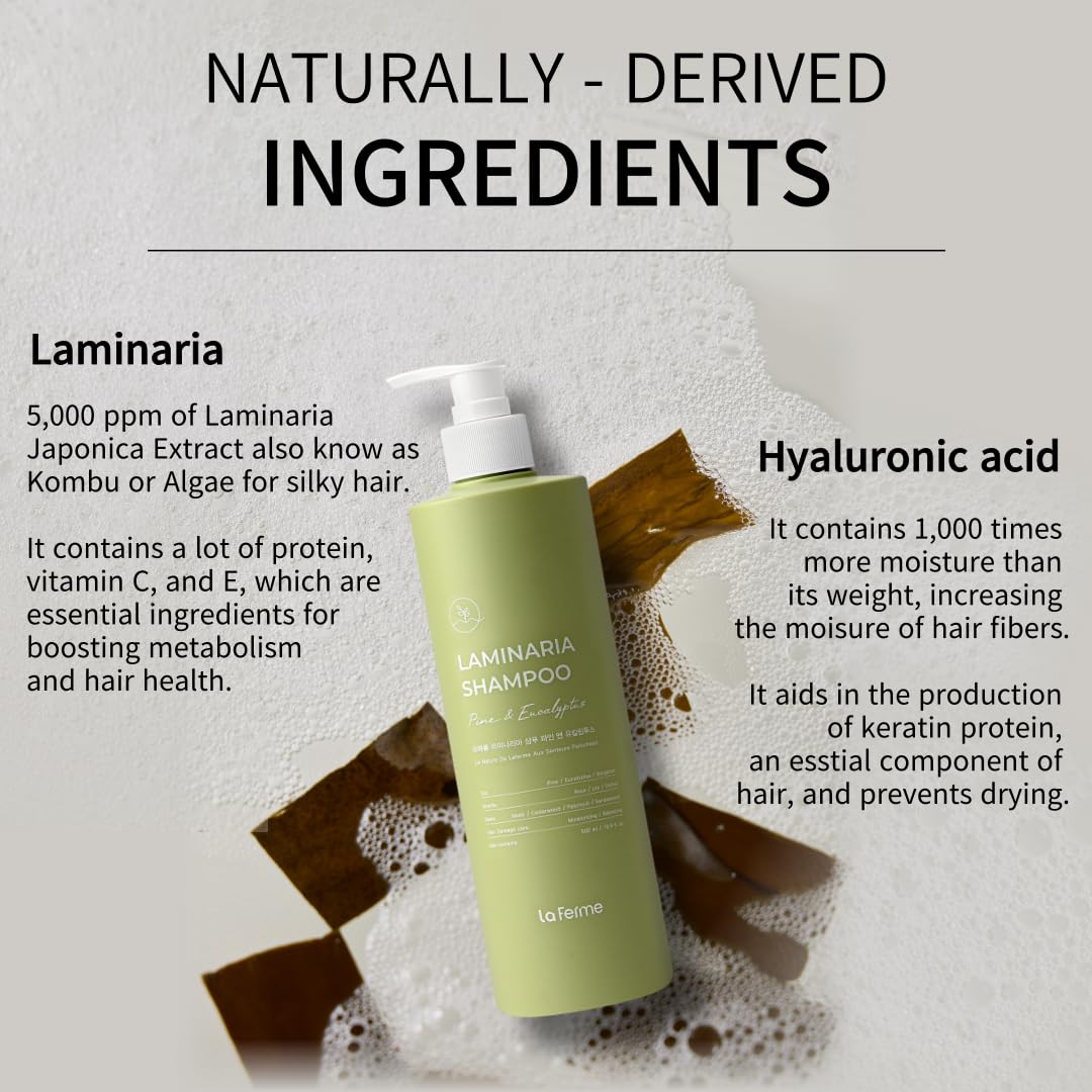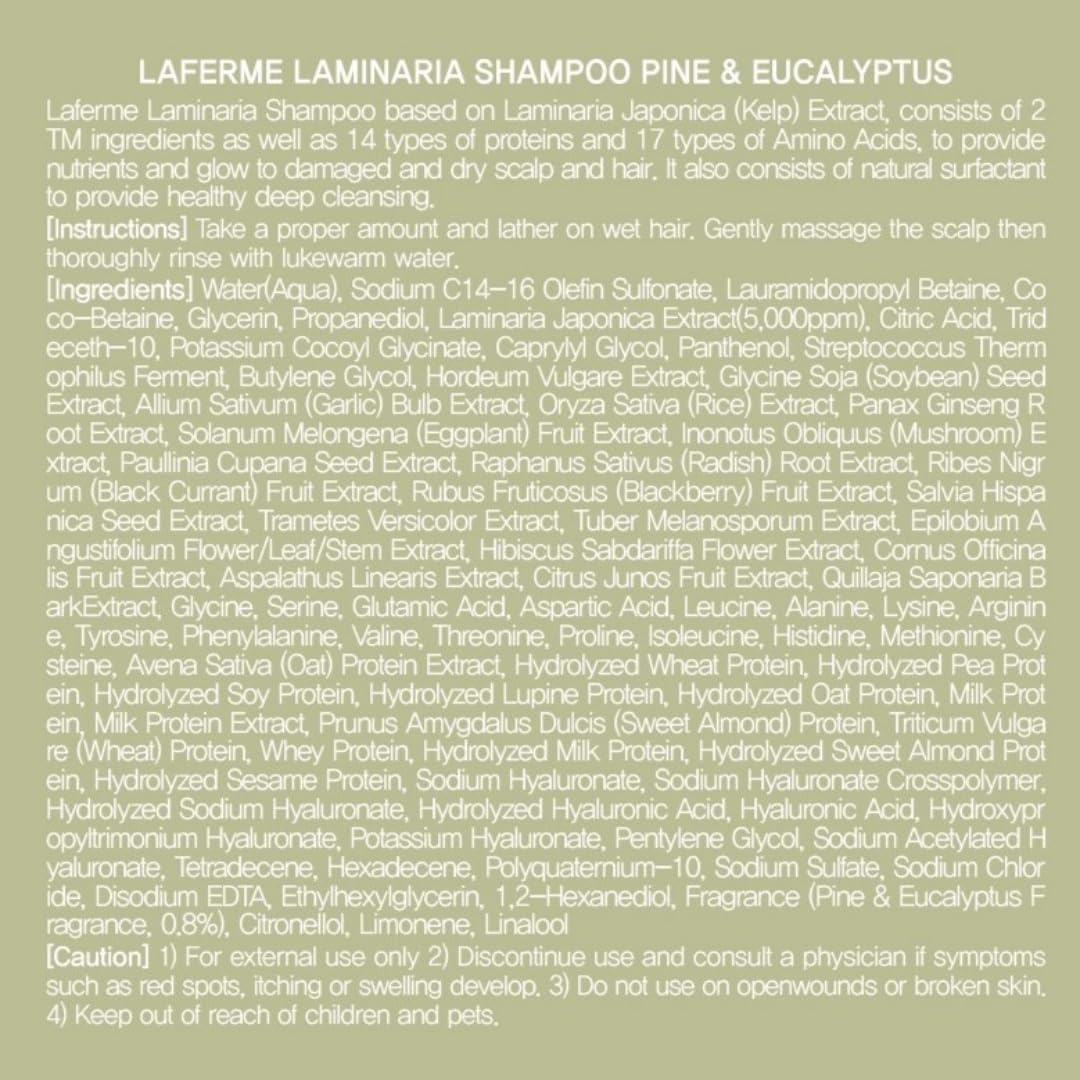 Laminaria Thickening Shampoo with Organic ingredient, Moisturize Scalp for dandruff, Strengthening & Hydrating hair, Sulfate & Paraben free, for Women & Men, 16.9 Fl Oz, Pine & Eucalyptus