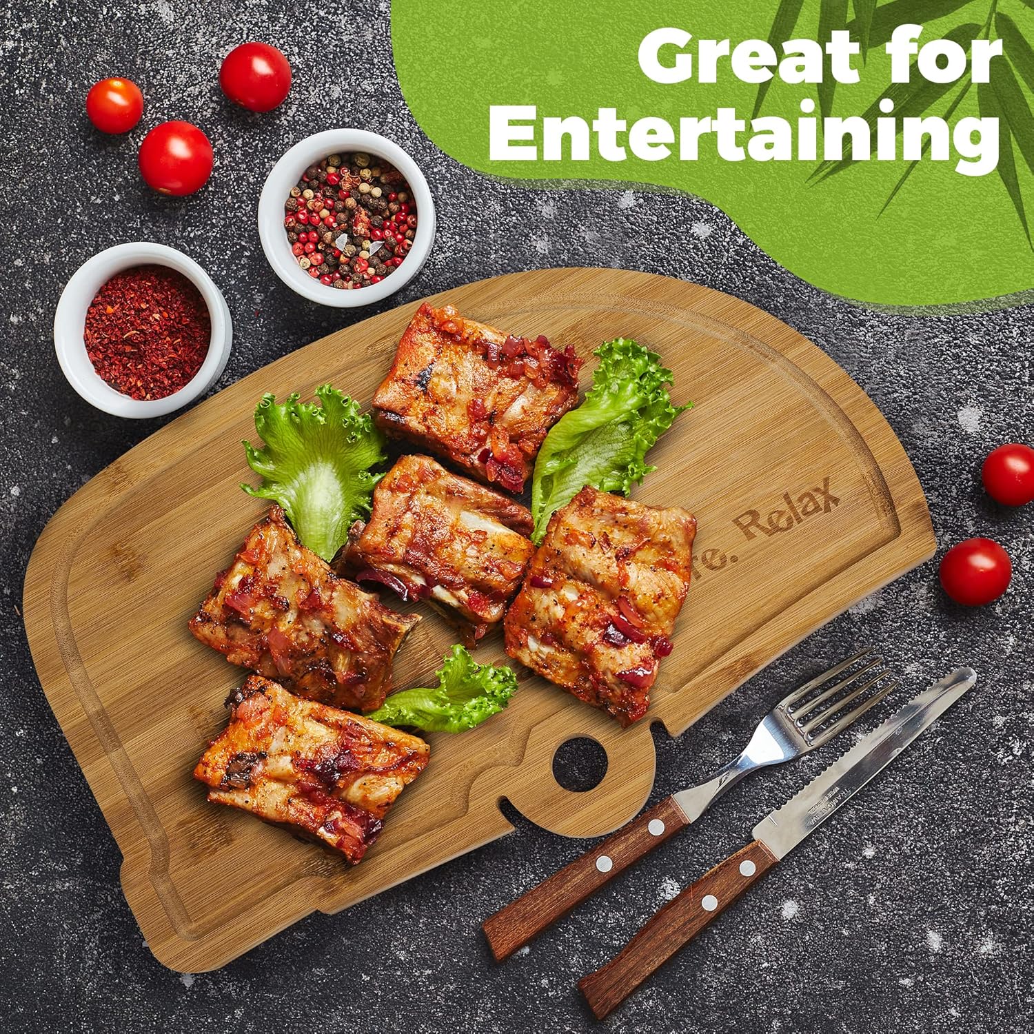 Large Bamboo Camping Cutting Board – 15.75x11x.75 inches, RV Shaped with Drip Edge, Hand Washable, Perfect for Camper Owners, Unique Camper Decor, RV Camping Must Haves