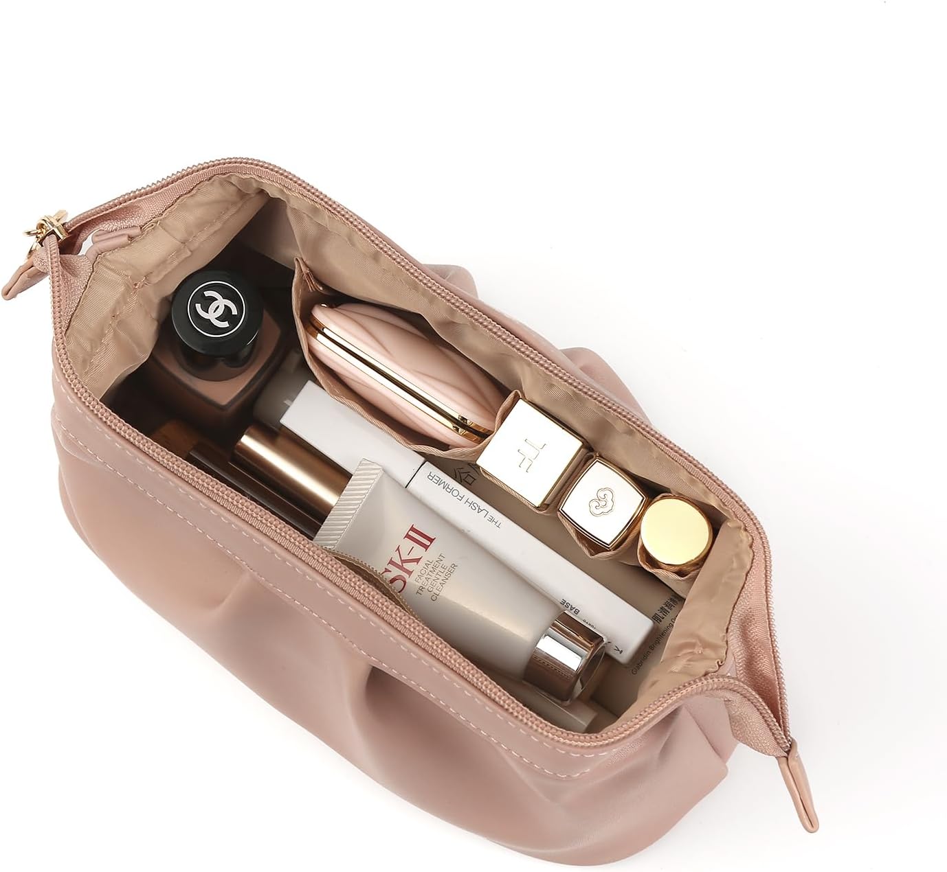 High Quality: The PU makeup bag has good scratch and wear resistance, waterproof, easy to clean, and remains as good as new after a long use. It is very lightweight for daily use, not only easy to carry but also space-saving, making your traveling easier and more enjoyable.