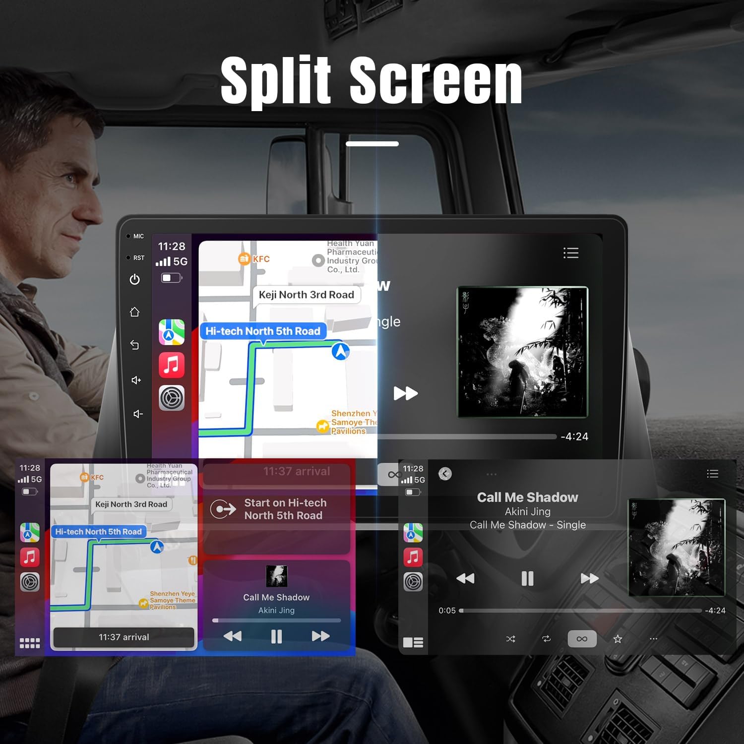 1 CarPlay & Android Auto 2 GPS Navigation 3 Play Music 4 Split Touch Screen 5 Back-up Camera