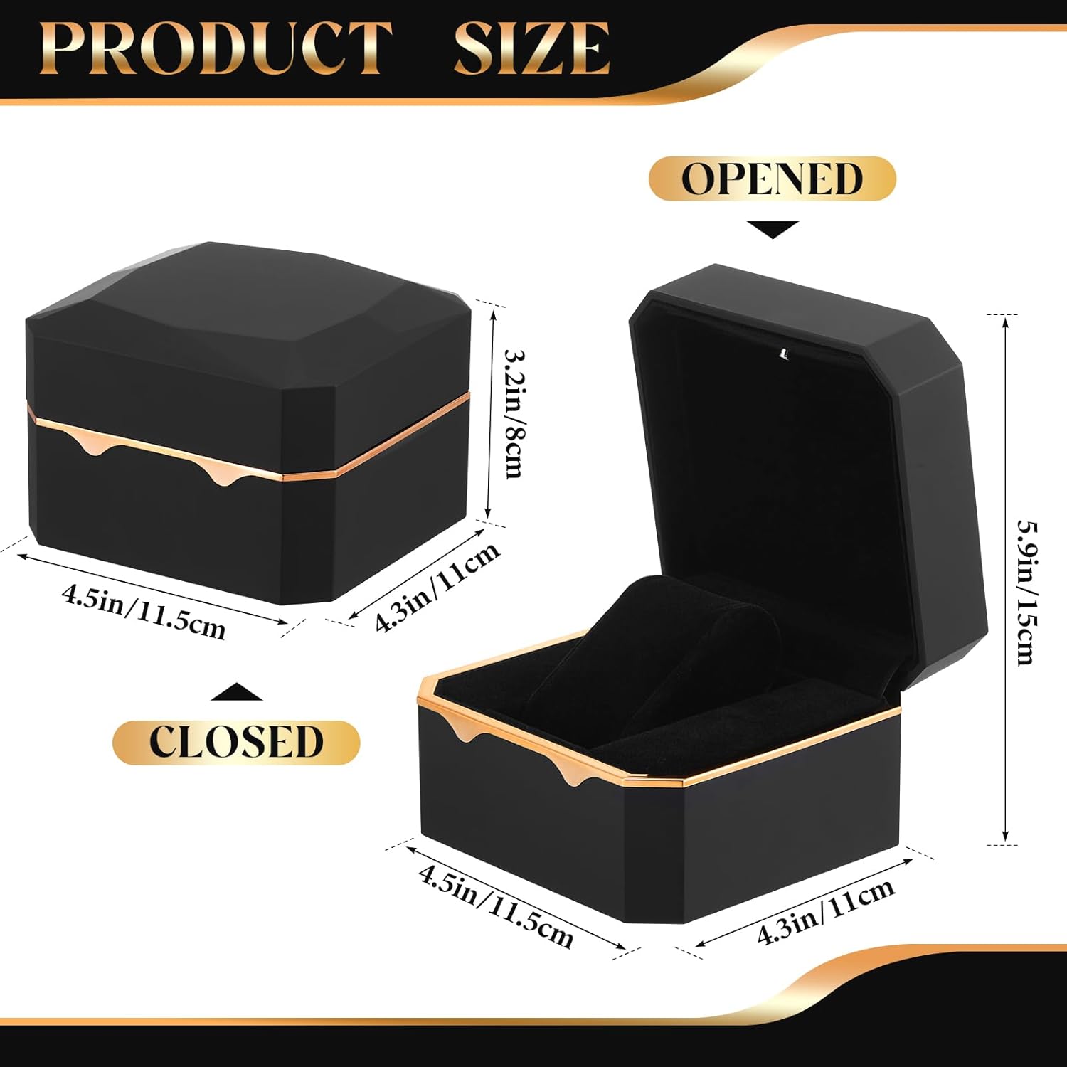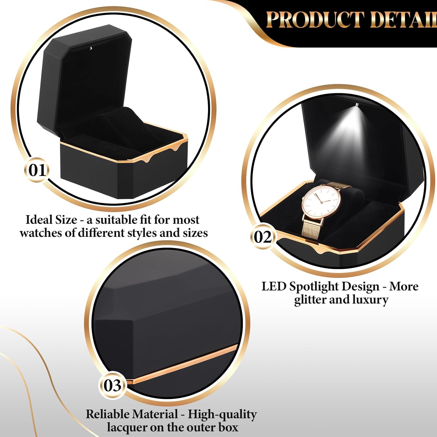 LED Watch Gift Box Single Watch Storage Case with Removable Pillow Wristwatch Box with LED Light Watch Display Box for Wedding Engagement Holiday, Black