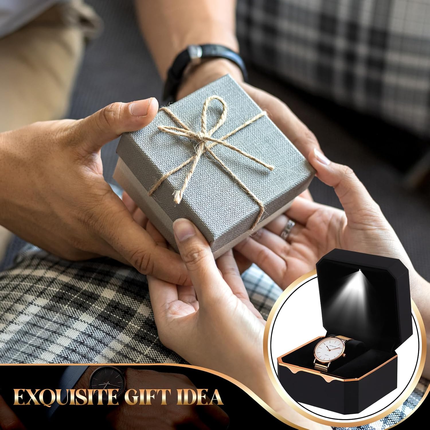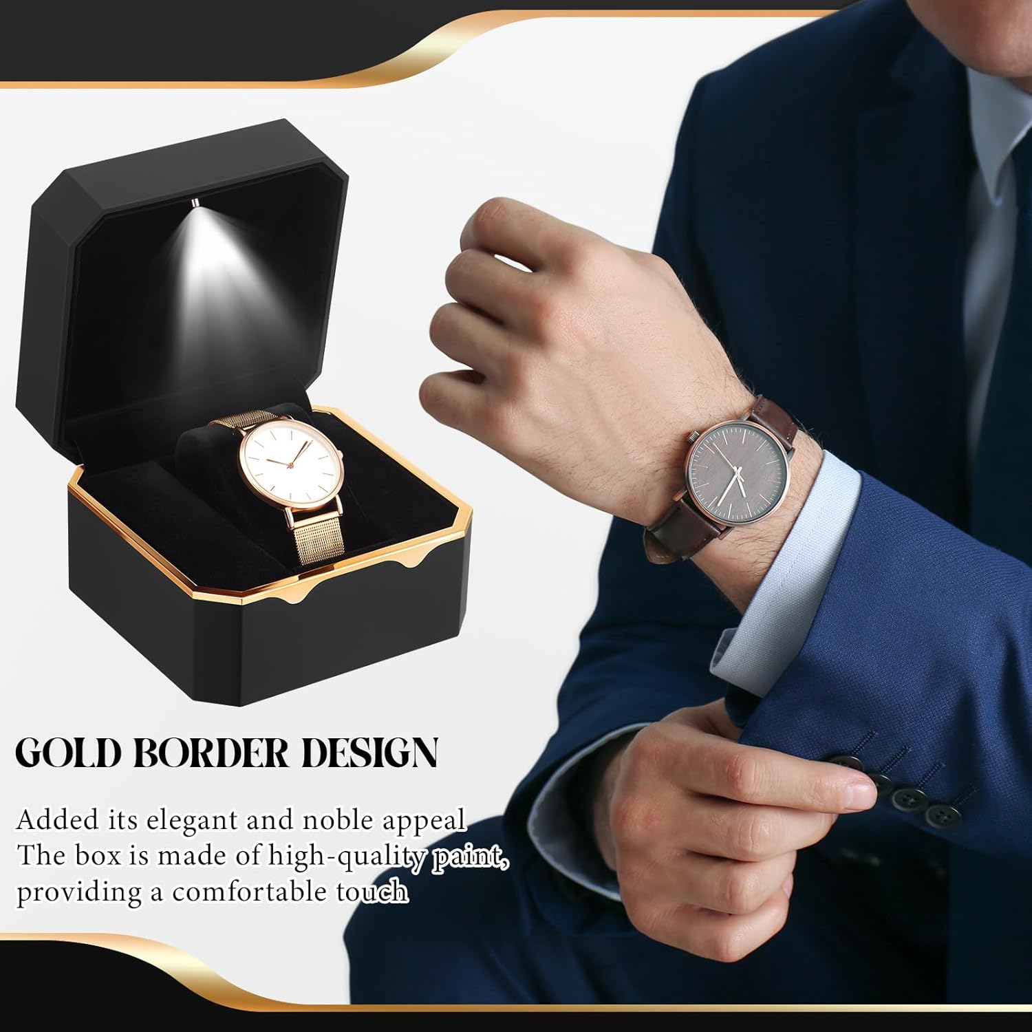 LED Spotlight Design: the box incorporates a soft LED spotlight design; This design does more than just illuminating the box, it elevates your watch’s magnificence, making it look more stunning; This watch gift box, with its lighting feature, is bound to make a better impression than ordinary watch gift boxes, especially when given as a present to your loved ones