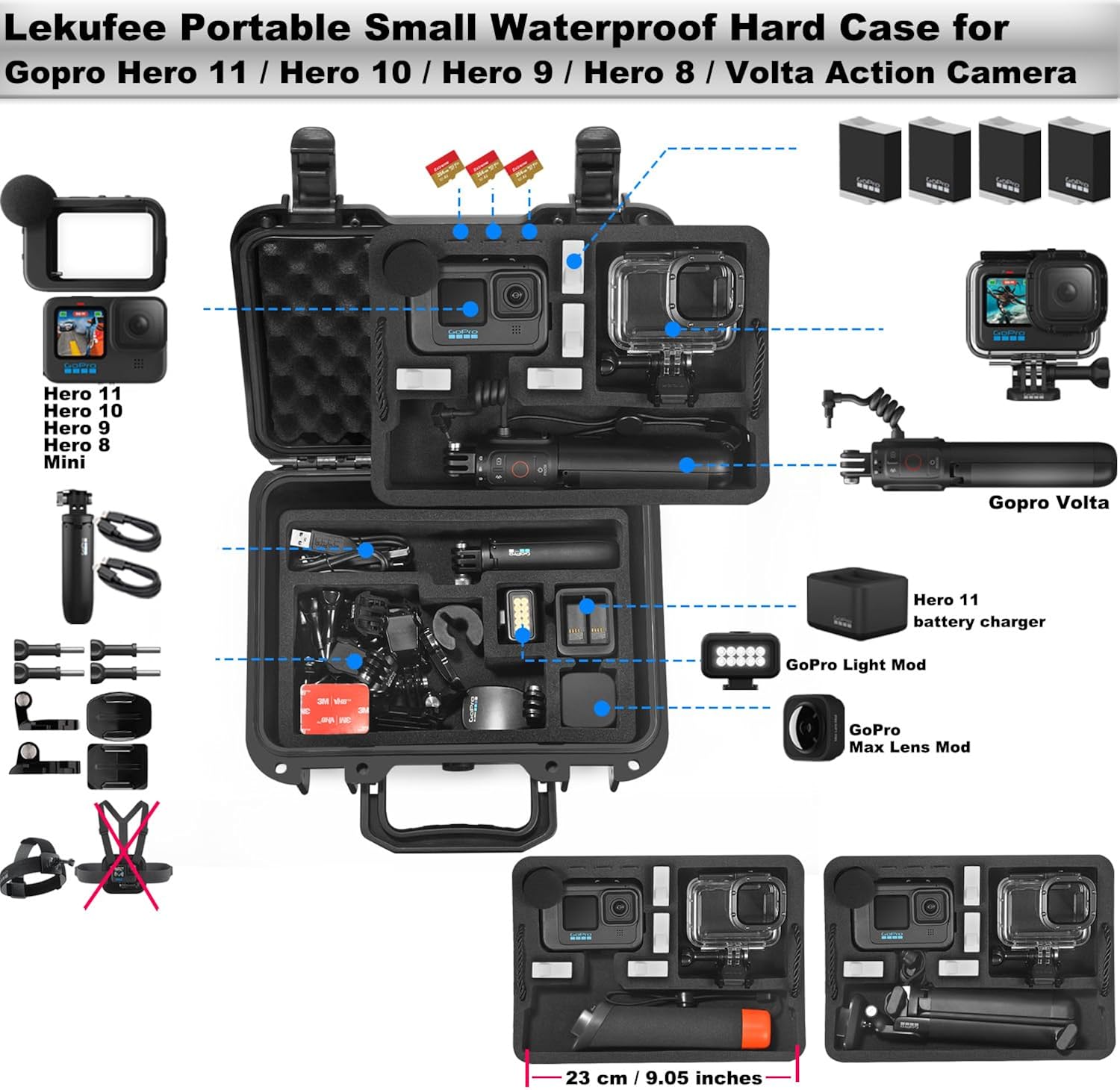 Lekufee Waterproof Hard Case Compatible with Gopro Hero 12/11/10/9/8/Media Mod/Gopro Volta/Creator Edition/Action Camera and Other Accessories(Case Only)