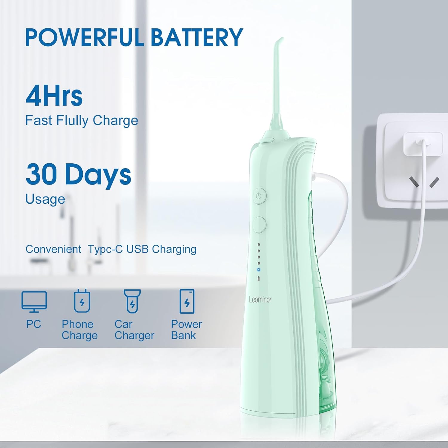 Leominor Water Dental Flosser Pick for Teeth – 5 Modes Cordless Portable Water Teeth Cleaner IPX7 Waterproof Oral Irrigator Rechargeable, Professional Flossing Cleaning Picks for Home Travel (Green)