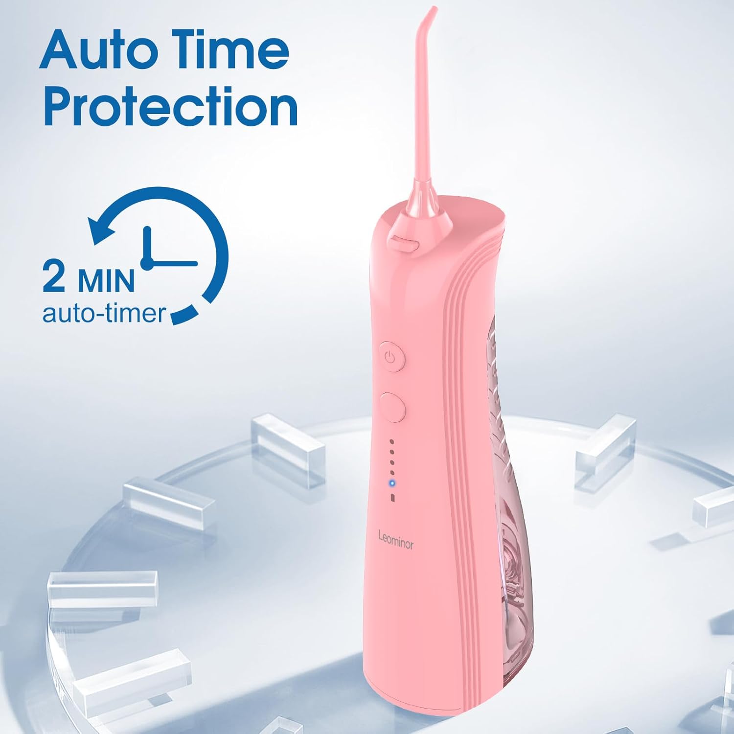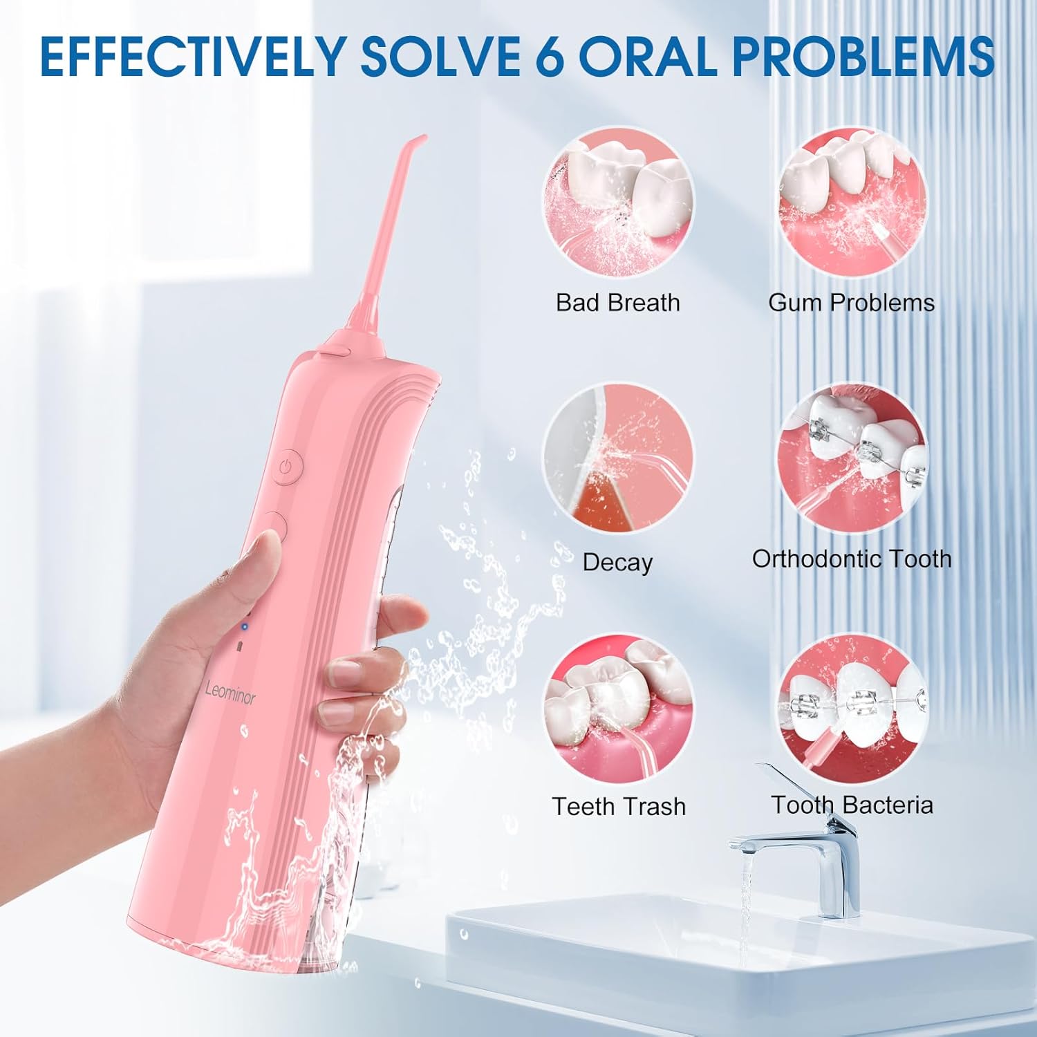 Leominor Water Dental Flosser Pick for Teeth – 5 Modes Cordless Portable Water Teeth Cleaner IPX7 Waterproof Oral Irrigator Rechargeable, Professional Flossing Cleaning Picks for Home Travel (Pink)