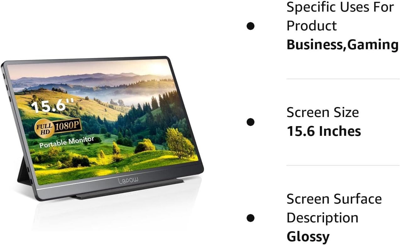 [Slim, Light Weight & Portable] With a slim 0.3-inch profile and just 1.76 pounds, Lepow 15.6 inch portable monitor is ideal for your life and work to make a simple setup on-the-go dual-monitor and mobile presentations.