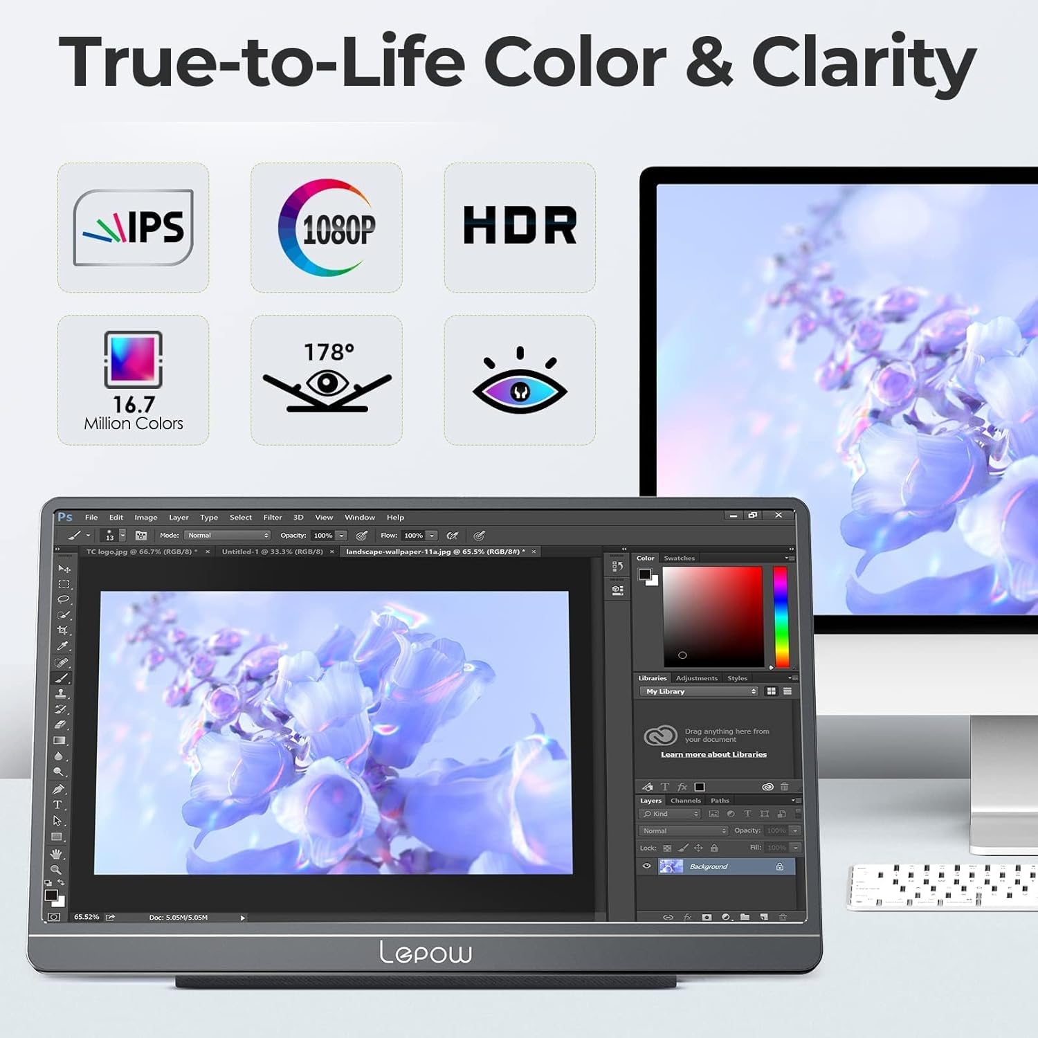 [Full HD 1080P Display] Lepow USB C Monitor delivers stunning 1920 x 1080 resolution visuals with awesome color reproduction. The IPS screen delivers you a vivid image and an awesome viewing experience when extending your screen or playing games.