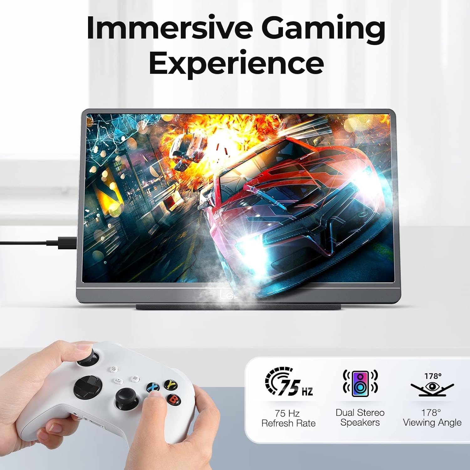 There are two built-in speakers on the back of the portable display, which deliver booming sound with crystal-clear audio quality. You can get immersive listening enjoyment when watching movies/playing games/listening to music. This portable display will bring you an enticing home theater experience.